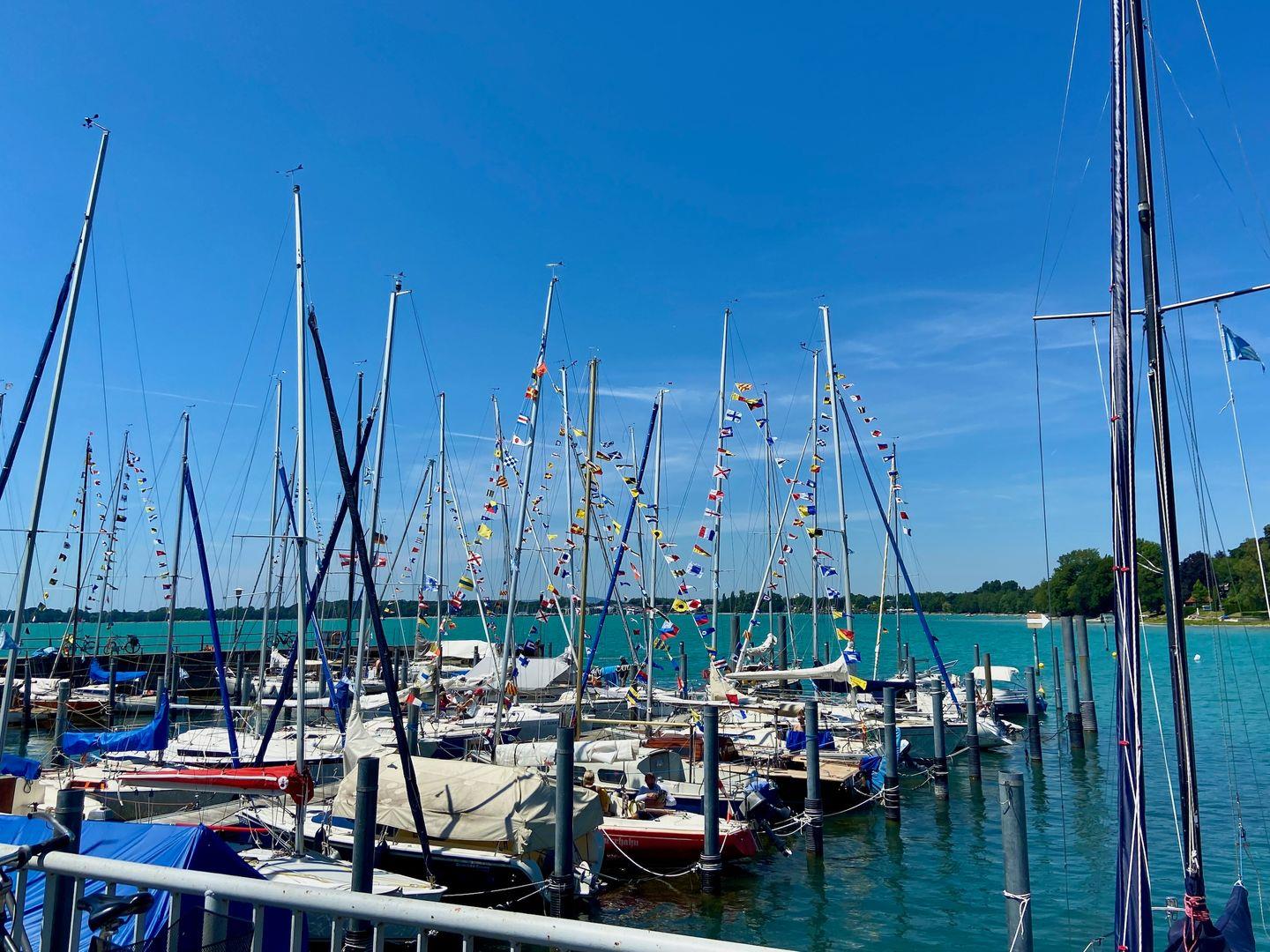 Bei Ihrer Ankunft erwarten Sie frisch bezogene Betten, sorgfältig hergerichtete Hand-, Dusch- und Geschirrtücher sowie ein Starterpaket mit Reinigungs-, Spül- und Hygieneartikeln. Die Endreinigung, Bettwäsche und ein Satz Handtücher pro Person und Woche sind im Preis inbegriffen; weitere Handtuchsets können bei Bedarf jederzeit hinzugebucht werden. Ihre Fahrräder können sicher im Fahrradraum der Wohngemeinschaft untergestellt werden. Wichtige Hinweise: Hunde sind in dieser Unterkunft leider nicht gestattet. Flexible An- und Abreise an sieben Tagen die Woche ist möglich, und durch den vorhandenen Schlüsselsafe steht auch einer späten Anreise nichts im Weg. Die Wohnung verfügt über WLAN, hat aber keinen Fernseher. Bei Ihrer Anreise erhalten Sie die Echt-Bodensee-Card, mit welcher Sie freie Fahrt in Bus und Bahn haben, sowie viele Vergünstigungen bei Ausflügen genießen können.