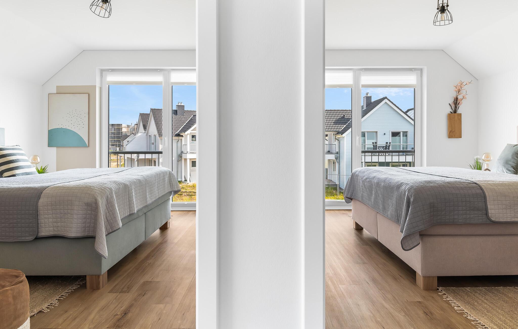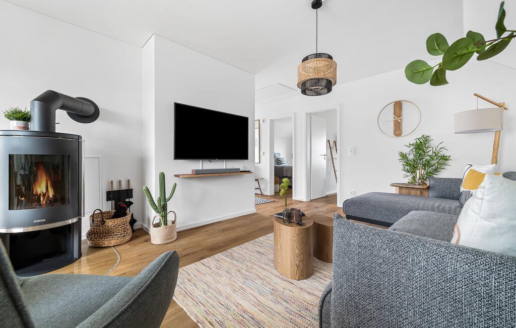 Noorderlicht er indrettet i skandinavisk pastelstil og byder jer velkommen med en åben stue og spiseplads og to solrige terrasser, der inviterer jer til at blive hængende og slappe af. Især på varme dage kan I nyde solen her til aftentimerne, grille afslappet eller afslutte en fantastisk feriedag og lade blikket vandre. Simpelthen det ideelle tilflugtssted for familier, par og venner. I de to soveværelser kan I forvente komfortable og højkvalitets king-size boxmadrasser (180x200cm), hvor I kan slappe vidunderligt af. I et af soveværelserne finder I også et smart-tv. Slap af foran tv'et eller lad jer inspirere af søde drømme. Opholds- og spiseafdelingen indbyder til at nyde lange morgenmad, måltider sammen og lange aftener, hvor det højkvalitets og fuldt udstyrede køkken er et paradis for hobbykokke, hvilket gør tilberedningen af retter endnu mere omgængelig takket være det åbne køkken-alrum. Det hyggelige opholdsområde i stuen er ideelt til filmaftener eller til at nyde den hyggelige atmosfære med hele familien. Gulvvarmen i hele lejligheden sikrer, at I føler jer hjemme i hver sæson. En infrarød kabine og en bruser på gulvniveau er tilgængelige for wellnesselskere. For dem, der ønsker at udforske det omkringliggende område, tilbyder vores ferielejlighed det perfekte udgangspunkt. Weidefelder-stranden og den livlige havnepromenade i Olpenitz er let tilgængelige til fods. Her kan I solbade, lege, svømme eller gå lange ture. Havnepromenaden i OstseeResort Olpenitz lokker jer til at slentre med et voksende udvalg af butikker og restauranter, mens sejler- og lystbådshavnen sikrer spændende havneøjeblikke. En parkeringsplads og et cykelskur lige foran lejligheden og WiFi er tilgængeligt for vores gæster. Vi håber snart at byde jer velkommen som vores gæster! Vores yndlingssted: gyngestolen foran pejsen. Hvem elsker ikke at afslutte dagen på denne måde? Bemærk venligst, at OstseeResort Olpenitz stadig er under opbygning. På grund af husene under opførelse kan udearealet og bygningstætheden konstant ændre sig og afvige fra de viste billeder. Lejeprisen er allerede beregnet ud fra denne byggesituation. Yderligere rabatter er udelukket.