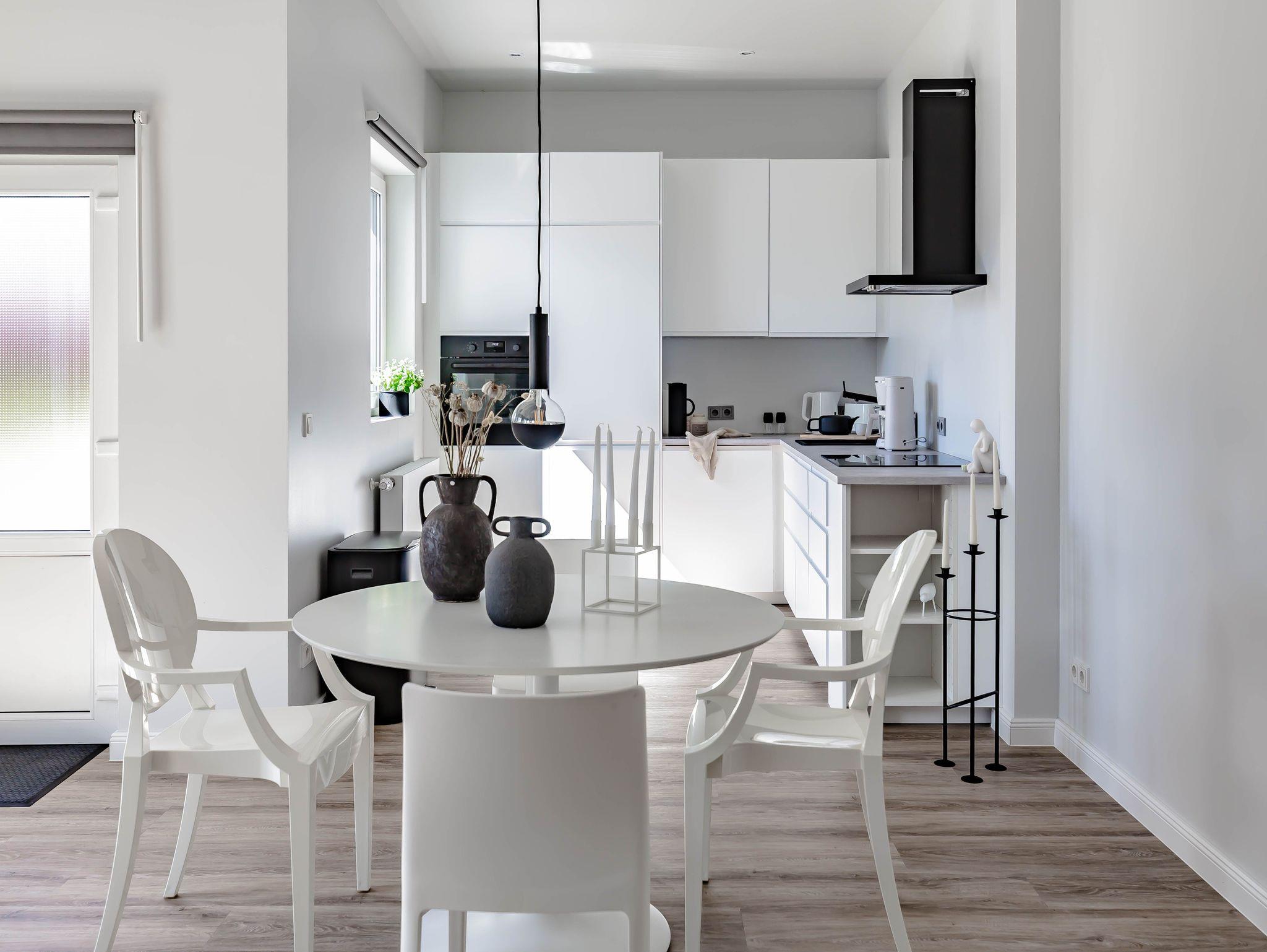 Die chic möblierte Wohnung ist in einem modernen, cleanen Wohndesign gestaltet. Sie