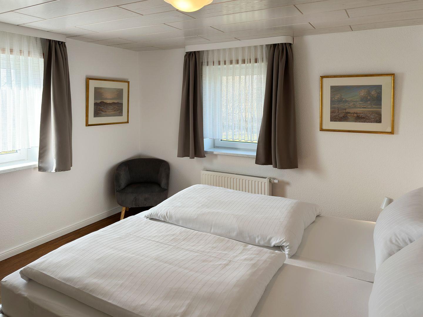 Die Wohnung verfügt über 1 großen Wohnraum mit offener Küche und Sat-TV, 2 Schlafzimmer, 1 Badezimmer mit Dusche und WC, 1 Terrasse mit Gartenmöbeln und 1 Strandkorb (April bis Oktober), 1 Terrasse mit Strandkorb (April bis Oktober). Auf dem Grundstück befindet sich ein Wäscheplatz. Bei Bedarf können Sie die Waschmaschine und den Trockner im Madelwai 7, Haus Strunluuper, nutzen.