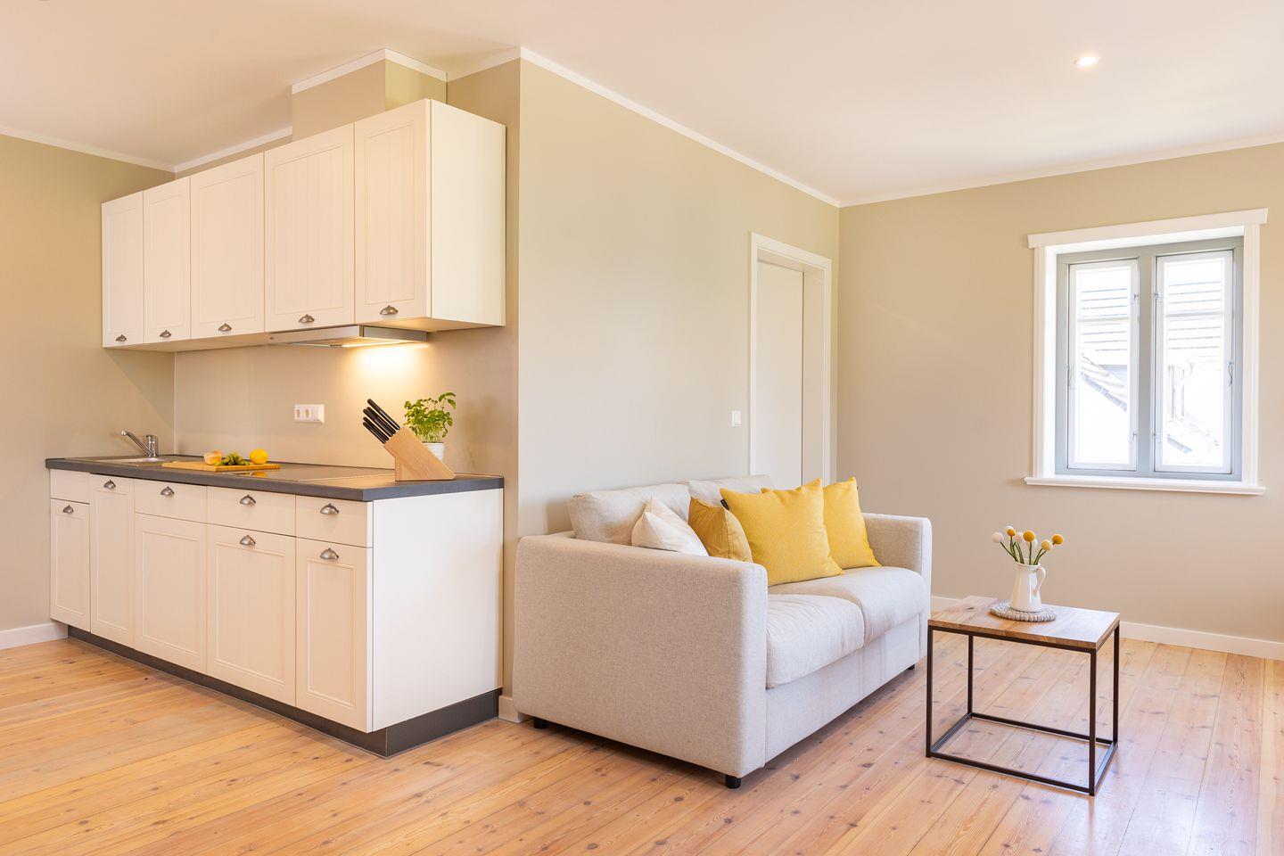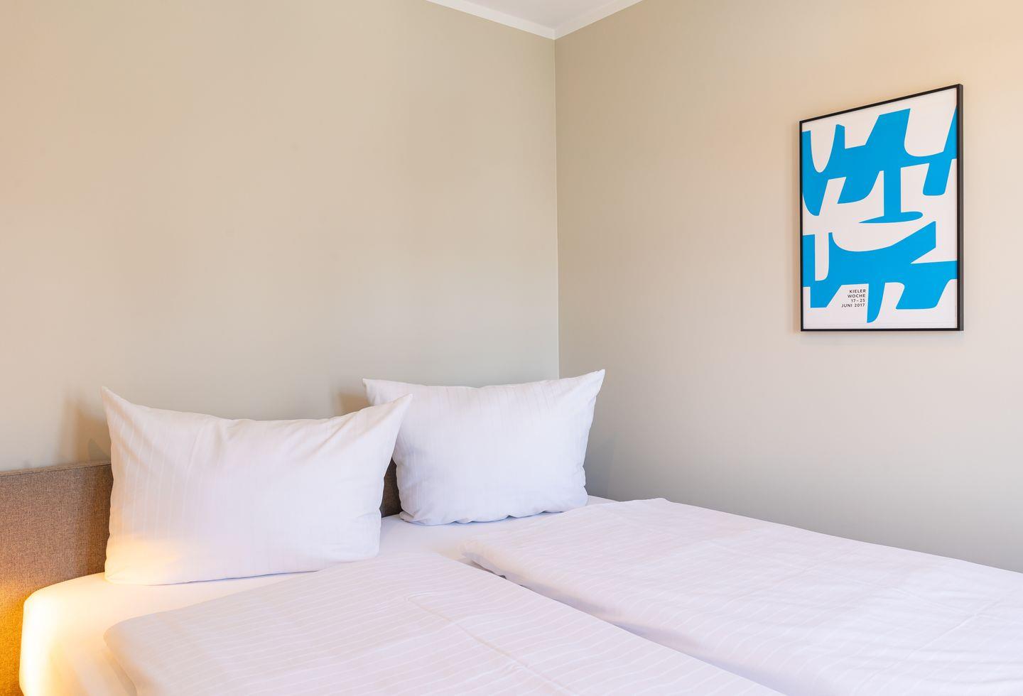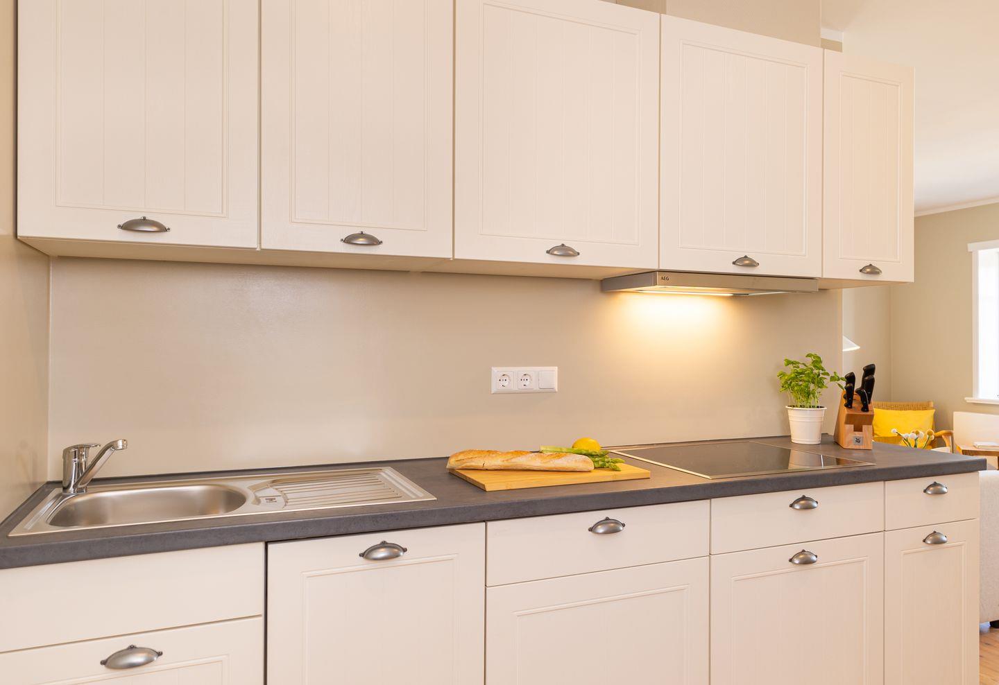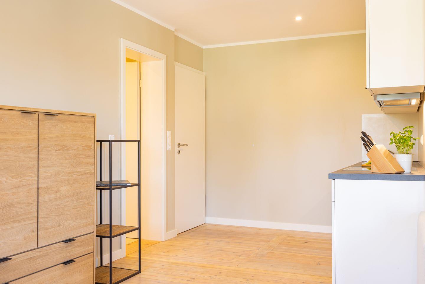 Diese 40qm² große Wohnung 4 liegt im ersten OG. Sie ist hell und geschmackvoll eingerichtet und bietet Ihnen vom ersten Tag an Erholung. Sie ist mit skandinavischen und hochwertigen Möbeln die Wohlfühloase Ihrer Amrumzeit. Im Wohn- und Essbereich ist eine Küche integriert. Der Wohnbereich mit TV und einem Sessel lädt zu erholsamen Stunden ein. Das Schlafzimmer ist mit einem 1,60 m breiten Boxspringbett ausgestattet.
