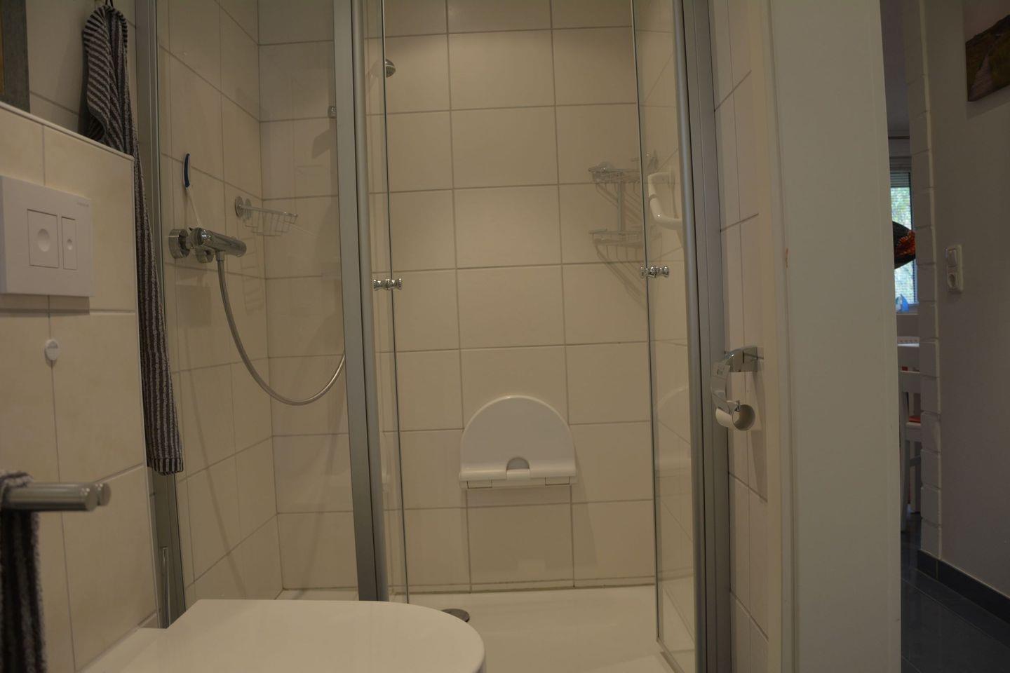Die Wohnung liegt auf einem Dünengrundstück zu dem neben Gartenmöbeln auch ein Grillplatz und ein Spielraum mit Tischtennisplatte und Kicker gehören. Das Grundstück ist terrassenförmig angelegt, im oberen Bereich befindet sich eine