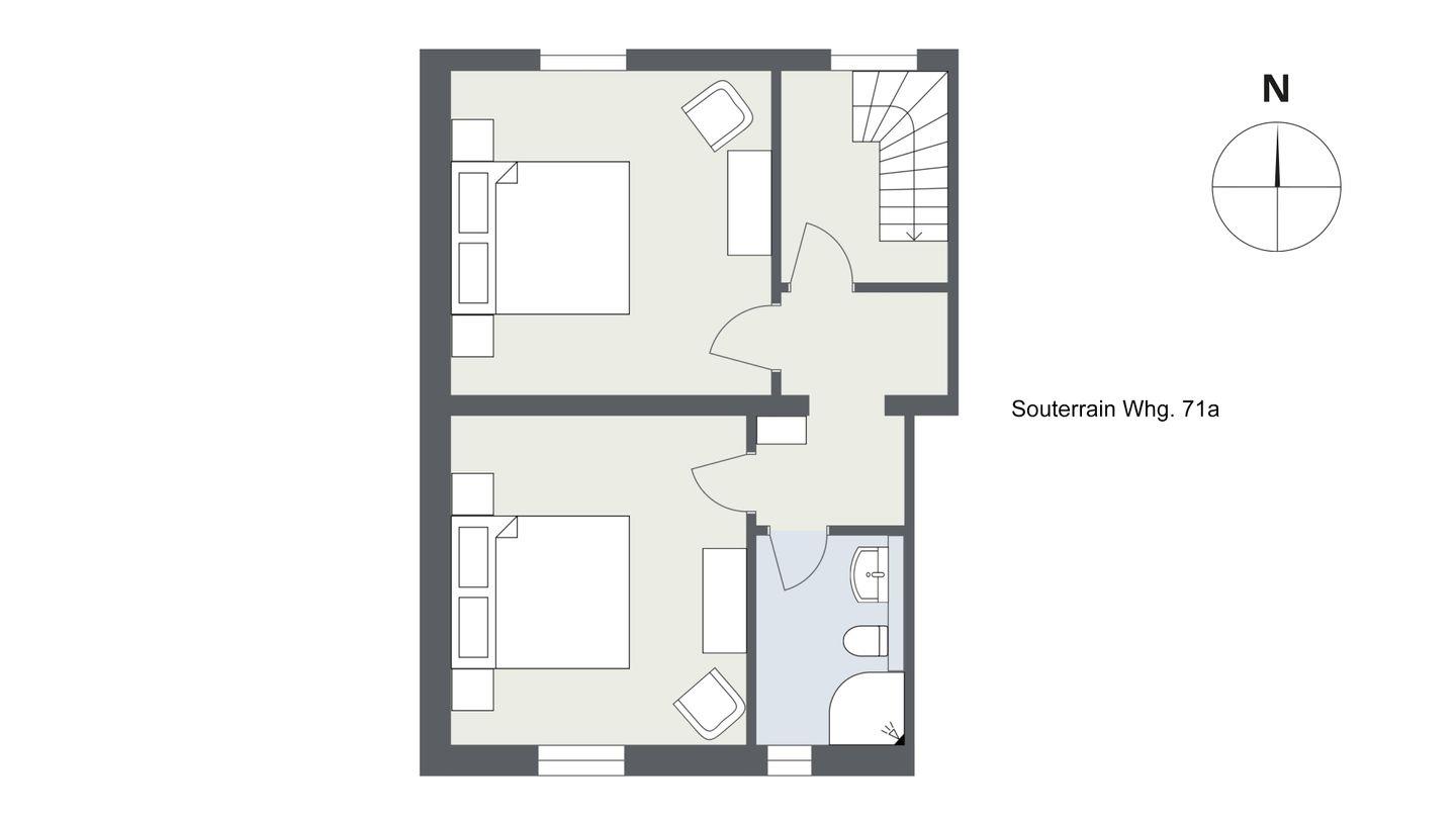 Bei einer Belegung mit maximal 4 Personen bleibt das Souterrain ungenutzt – die Fläche im Erdgeschoss steht Ihnen vollständig zur Verfügung.
