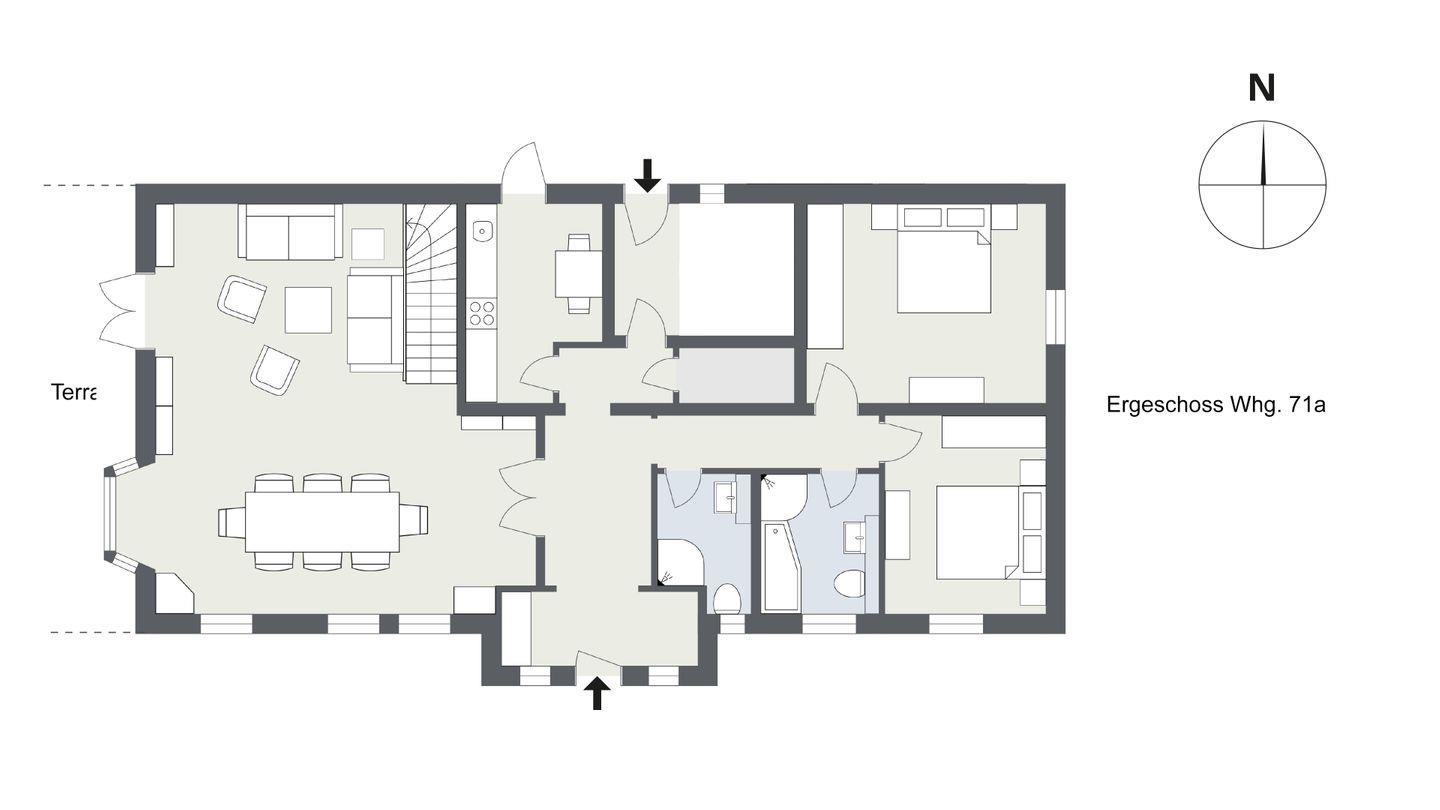 Erdgeschoss/ Souterrain – ca. 165 qm mit Terrasse, bis 8 Personen