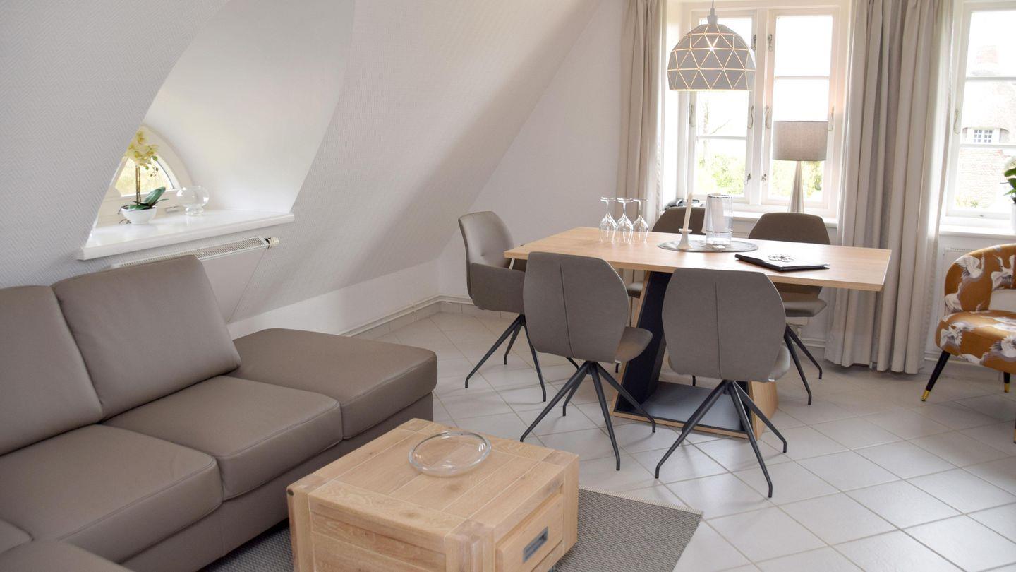 Obergeschosswohnung über 2 Ebenen für 4 Personen, Nichtraucher, ca. 54 qm mit einer Terrasse auf dem Gartengrundstück.