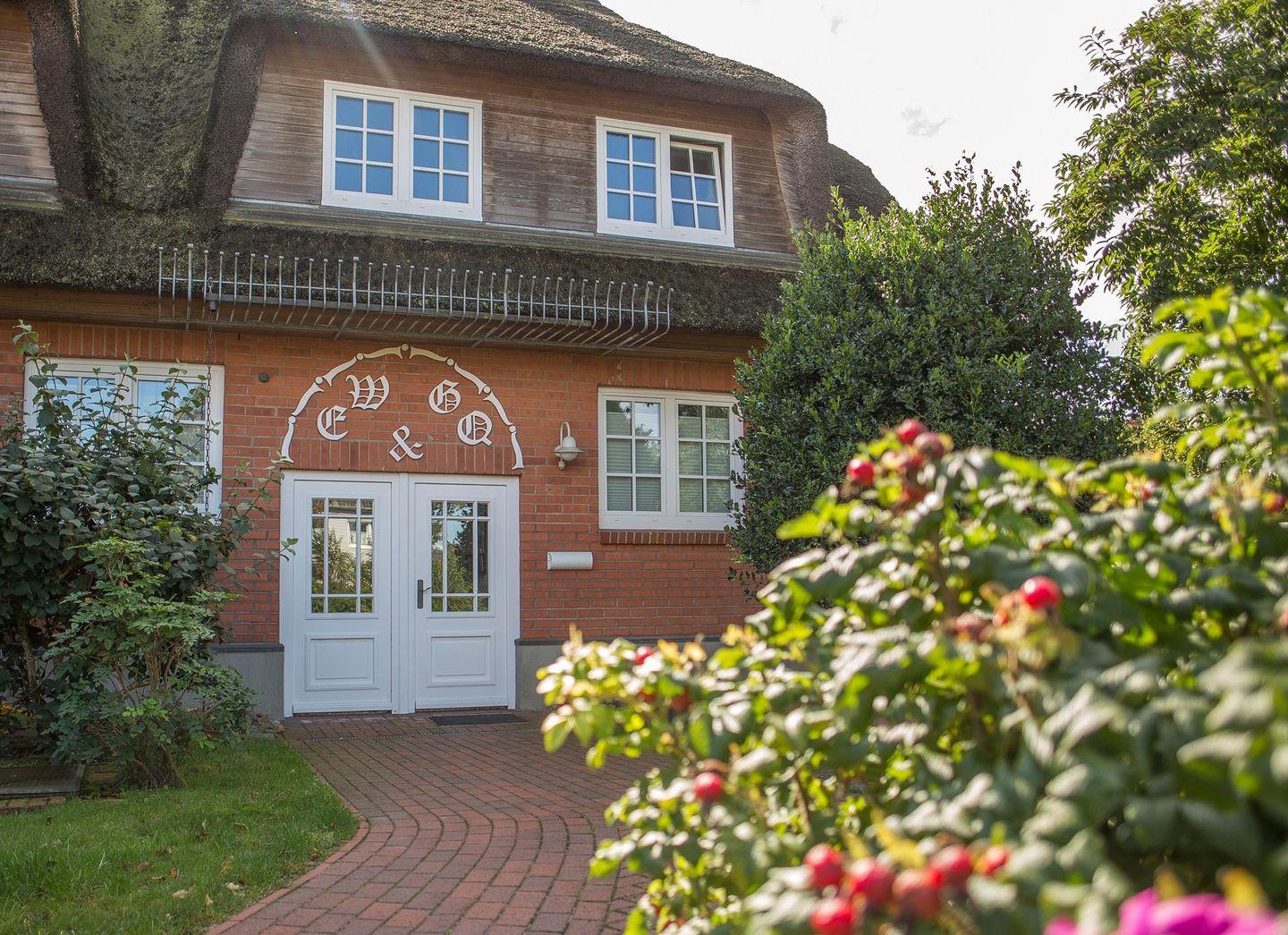 Abendsonne: eine wunderschöne Ferienwohnung im Reetdachhaus Pesel in Norddorf auf Amrum, WLAN, Meerblick, Garten, Sauna, Strandkorb