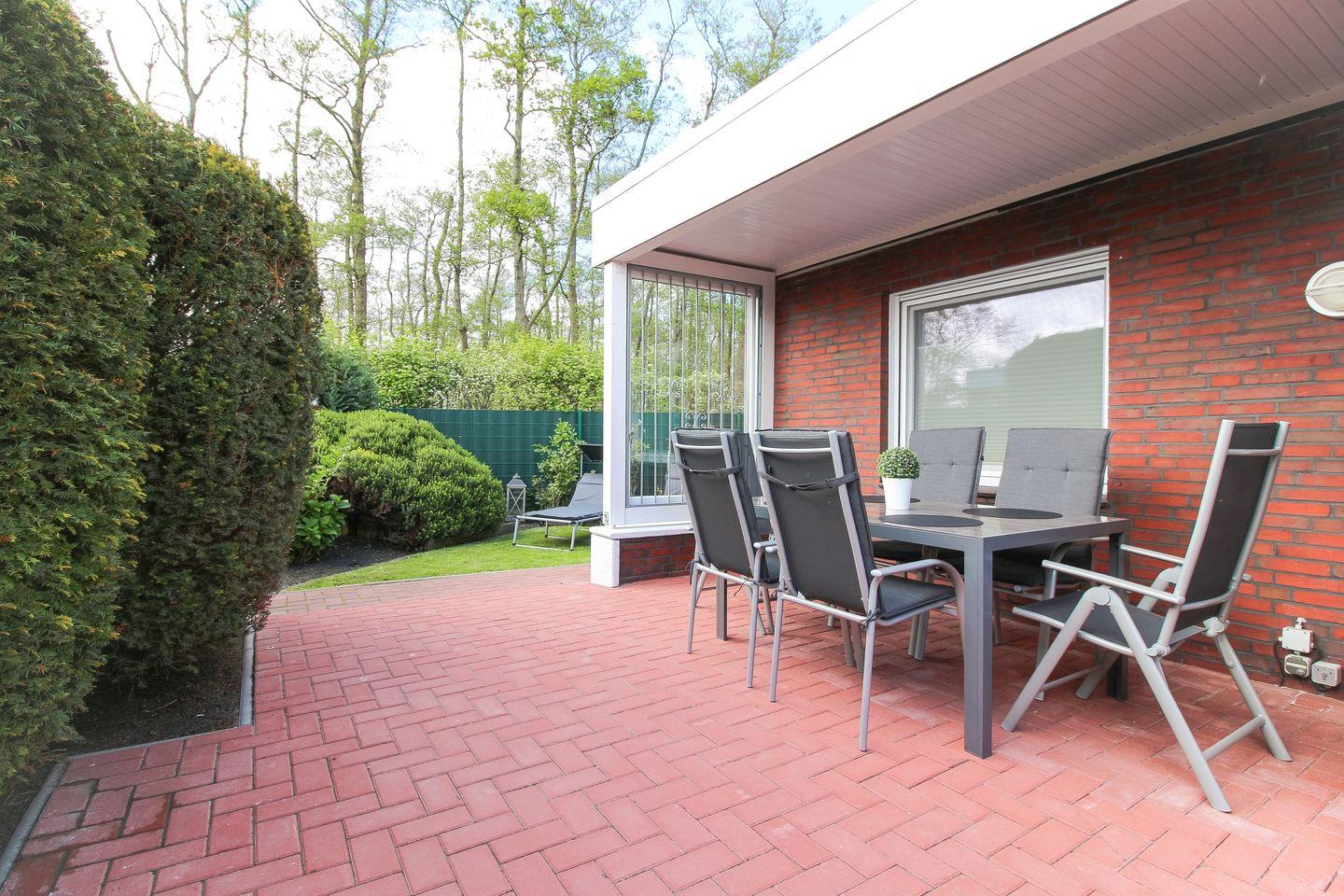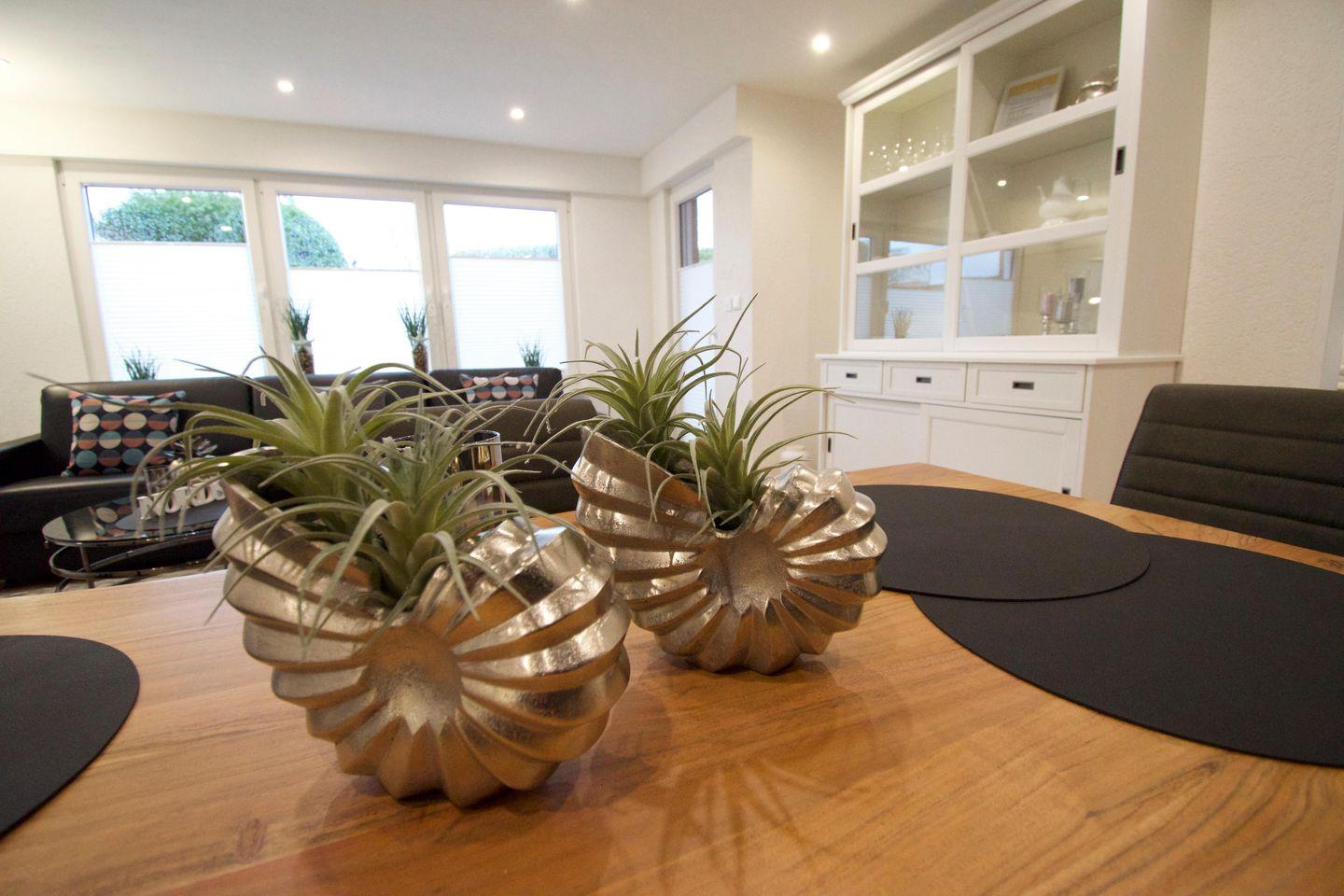 Genießen Sie den hellen Wohnbereich mit direktem Zugang zur großen Terrasse und dem gepflegten Garten mit Gartenmöbeln. Ein besonderes Highlight: Privater Zugang zum Kurpark direkt hinter dem Grundstück – ideal für Spaziergänge und ruhige Auszeiten im Grünen.