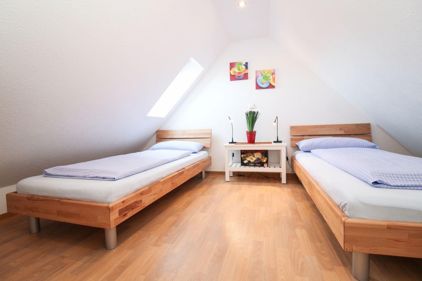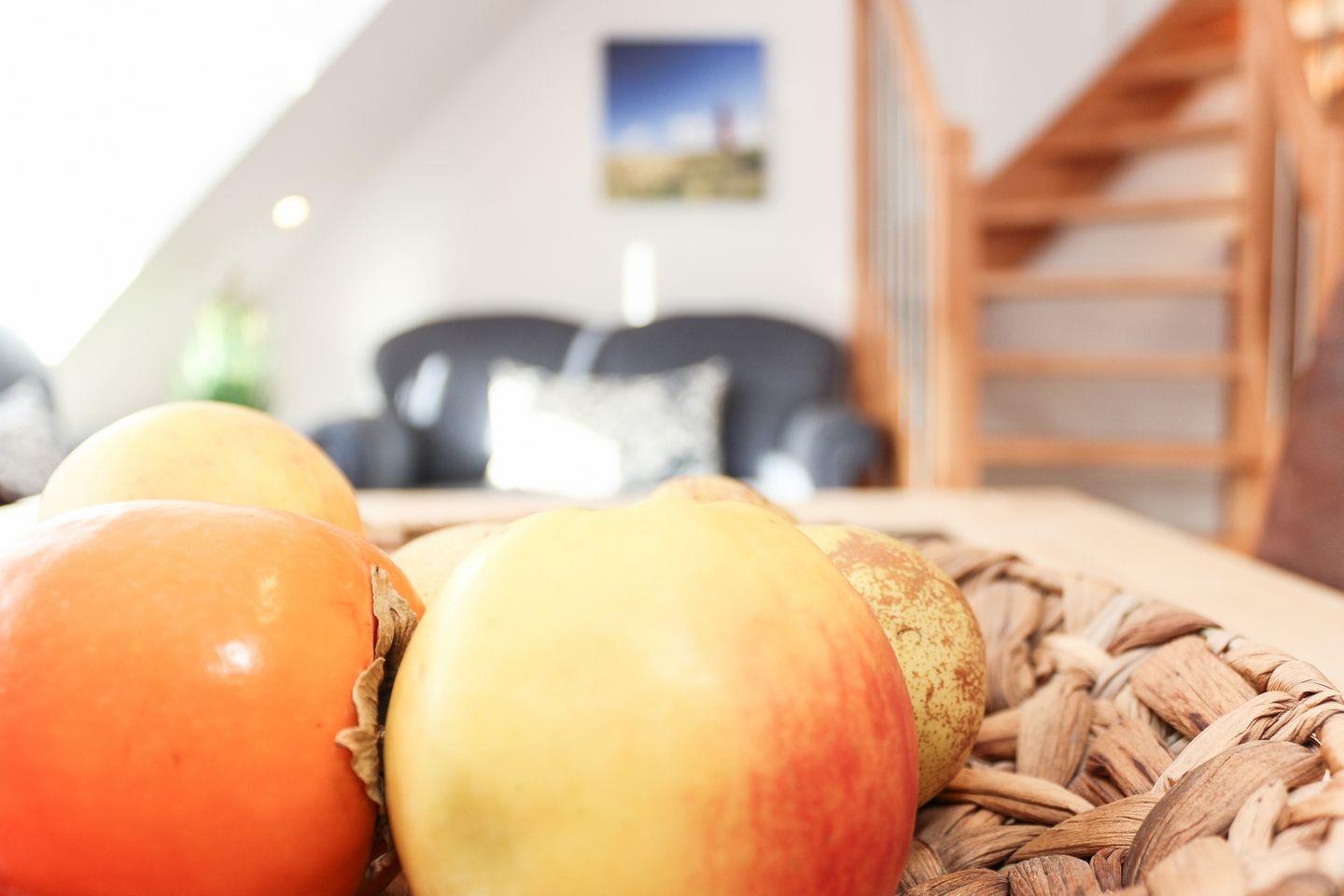 Die Unterkunft erstreckt sich über zwei Etagen und befindet sich im ersten Stock. Die bodentief gefliesten Wohn- und Schlafräume sorgen für ein gepflegtes und sauberes Ambiente. Das Wohnzimmer überzeugt mit einer gemütlichen Sofaecke, Sessel sowie modernen Unterhaltungsmedien wie TV, Blu-ray-Player, CD-Player und Radio. Für gesellige Abende stehen Ihnen zudem eine Auswahl an Spielen und Büchern zur Verfügung. Ein Esstisch bietet ausreichend Platz für gemeinsame Mahlzeiten.
