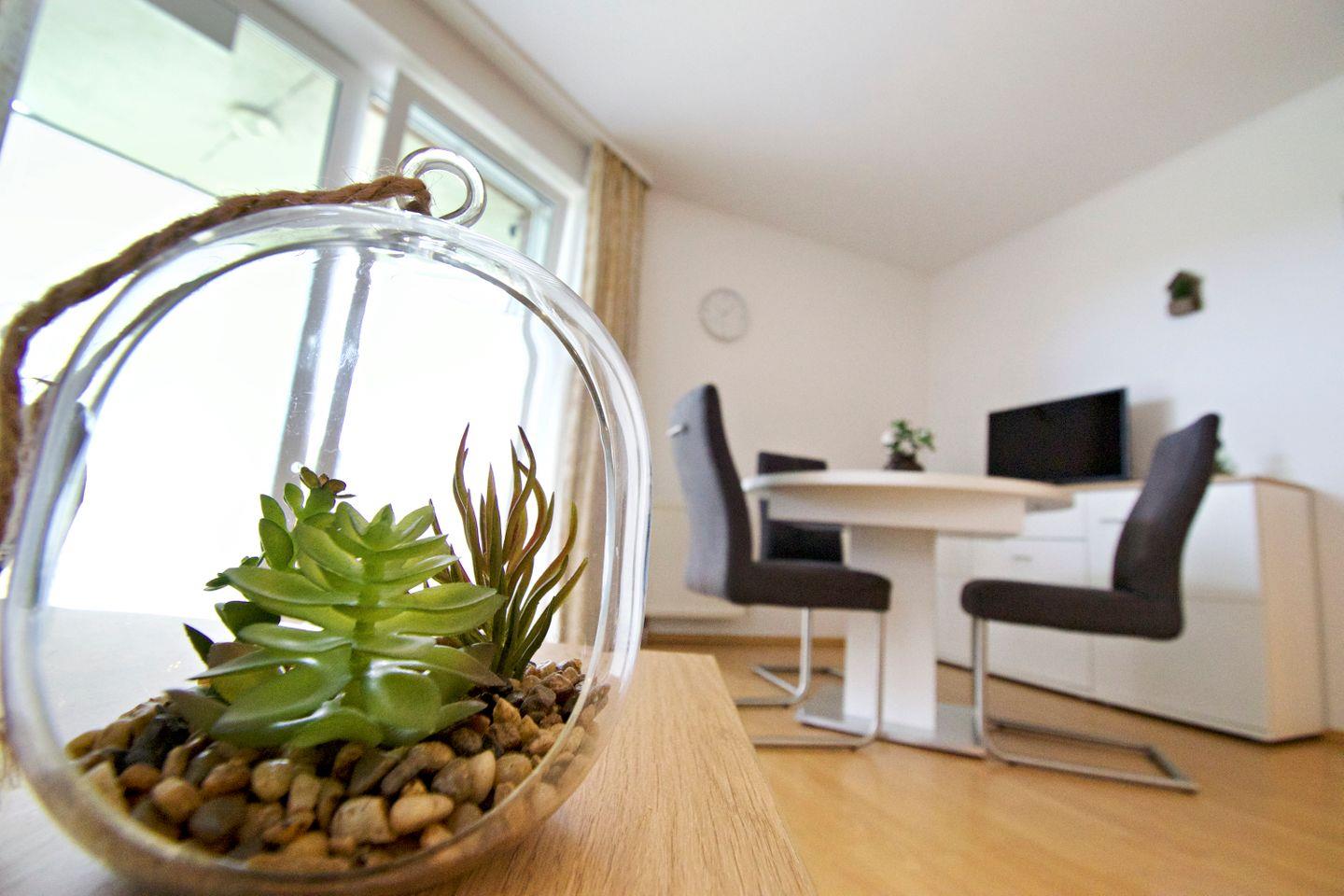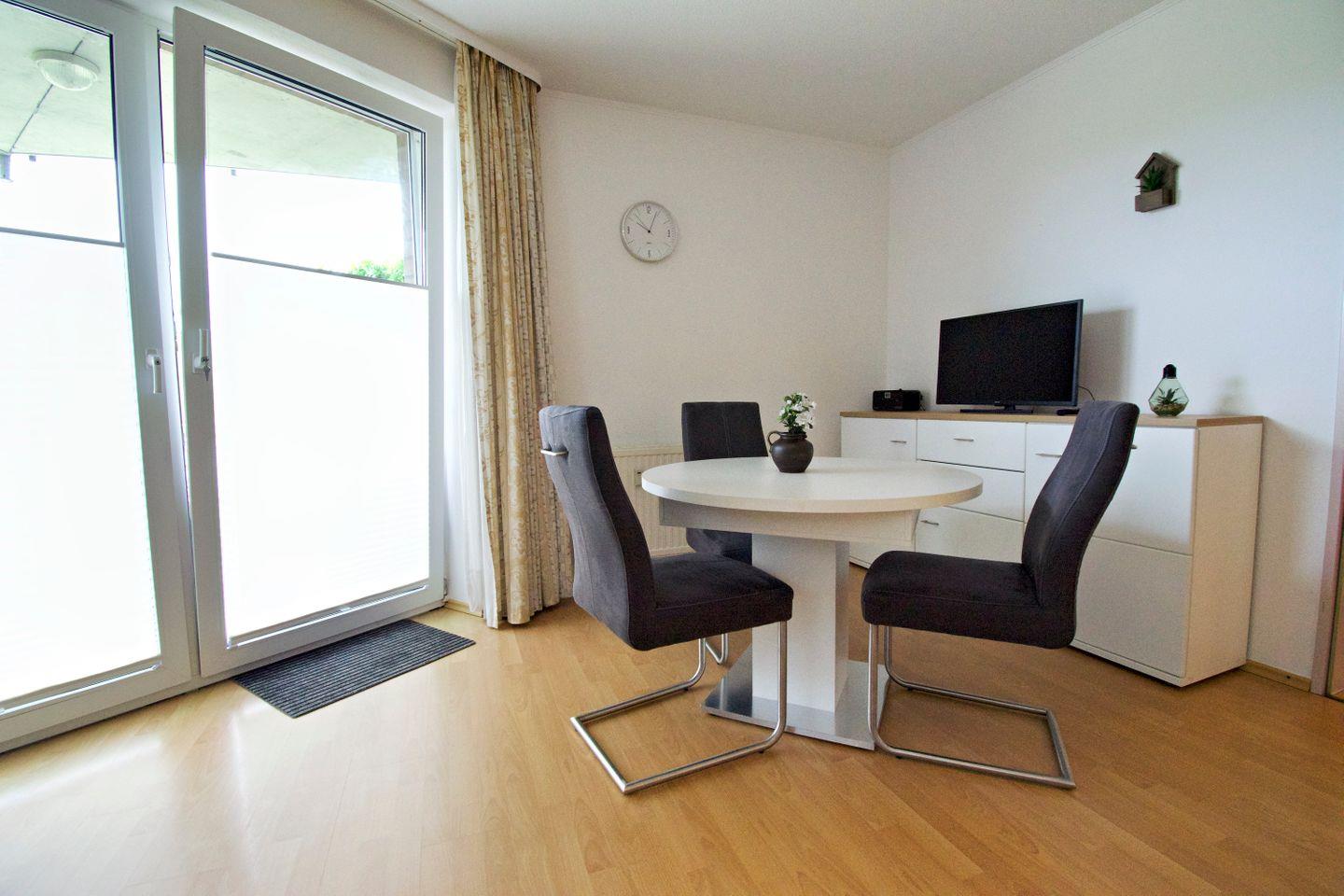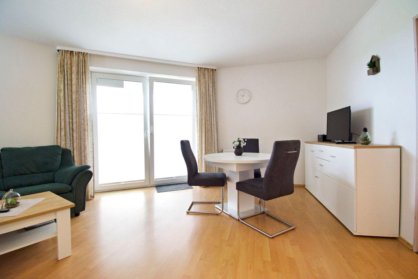 Die gemütliche Ferienwohnung bietet eine Wohn- und Wohlfühlfläche von mindestens 45?m² – ideal für Paare oder die kleine Familie. Der vollständig mit Laminat ausgelegte Wohn- und Essbereich sorgt für eine angenehme Atmosphäre und ist pflegeleicht zugleich. Die Wohnung liegt zentral und dennoch ruhig, direkt hinter dem Deich, sodass Sie sowohl Erholung als auch kurze Wege genießen können.