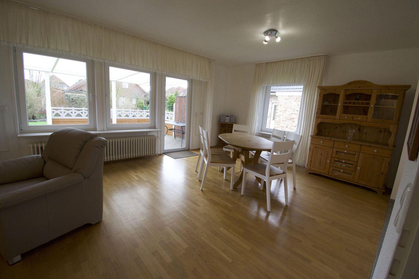 Das Ferienhaus zeichnet sich durch einen gepflegten Gartenbereich mit Terrasse aus, die mit Gartenmöbeln, Sonnenliegen, Sonnenschirm, Windschutz, Markise und genügend Sonnenschutz ausgestattet ist. Eine Liegewiese bietet zusätzlichen Raum zum Verweilen oder Spielen. In sonniger Umgebung können Sie die frische Nordseeluft genießen. Für Gäste, die mit Haustieren anreisen, sind bis zu zwei Tiere herzlich willkommen.