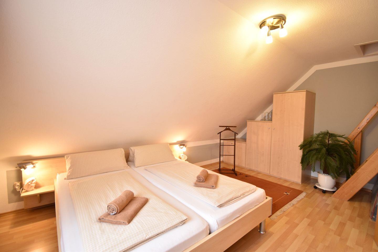 Ferienhaus Steuerbord (ab 2026 Ferienhaus SaSchu 2), 3-Zimmer-Doppelhaushälfte, 85 m² auf zwei Stockwerken, gemütlich, ruhig, geräumig und hell: Wohn-/Esszimmer mit Kabel-TV, CD, Radio, DVD und DVD Sammlung. Separate Küche (Cerankochfeld, Backofen, Geschirrspüler, elektrische Kaffeemaschine). Separates WC. Obergeschoss: 1 Doppelzimmer. 1 Zimmer mit 2 Betten, Radio und CD. Dusche/WC. Terrasse 12 m², Südwestlage. Terrassenmöbel, Gartengrill. Geeignet für Familien bis zu vier Personen.
