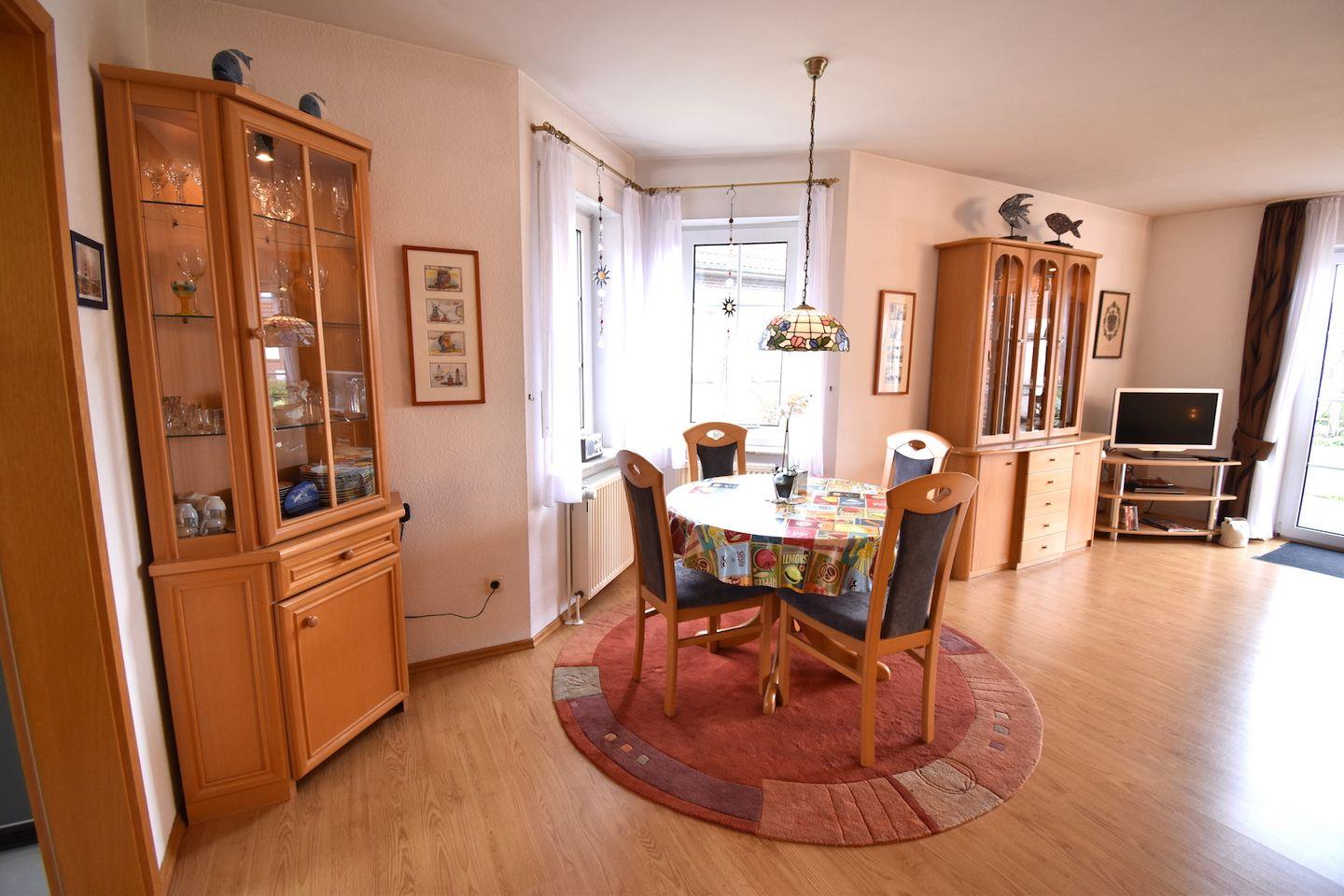 Der große Garten in Südwestlage steht Ihnen mit einer eigenen Gartenfläche zur Verfügung. Die gepflasterte Terrasse ist mit Bestuhlung und Mobiliar ausgestattet und lädt zum Verweilen ein. Ein Kamin-Grill inklusive Grillrost sorgt für genussvolle Grillabende. Für Schatten und Privatsphäre sorgen Sonnenschirm, Markise sowie ein Sichtschutz.