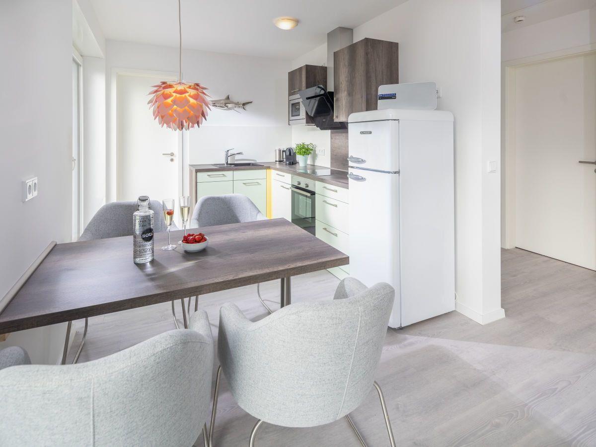 In moderner Architektur mit zukunftsorientierter Ausstattung in Kombination mit einer exklusiven Wohnanlage befindet sich die geschmackvoll eingerichtete Wohnung, die Sie bequem über einen Fahrstuhl erreichen. Die Wohnung überzeugt durch qualitativ hochwertige Materialien und das Inventar, das zu einem unvergesslichen Urlaubserlebnis beiträgt. Zur Ausstattung der Ferienwohnung gehören ein modernes Schlafzimmer, ein großzügiges Badezimmer und ein gemütliches Wohnzimmer mit bequemer Schlafcouch sowie eine offene und moderne Wohnküche, die optimale Bedingungen für einen Traumurlaub bieten.