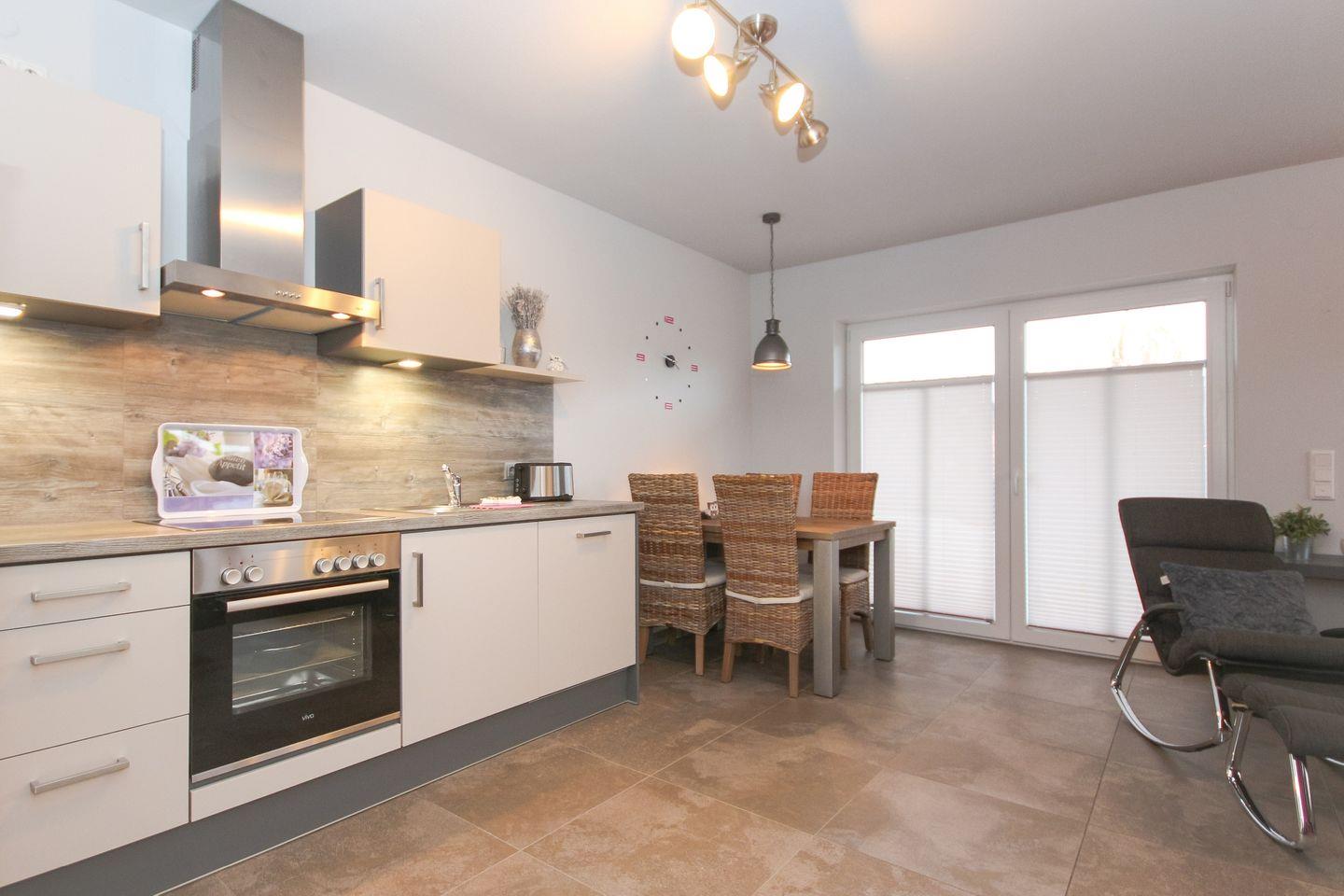 Informationen zu unserem Objekt „Am Kutterhafen“ im Erdgeschoss: Vom Flur aus gelangen Sie zunächst in den Küchen- und Esszimmerbereich, an den das Wohnzimmer direkt in offener Bauweise angrenzt. Machen Sie es sich auf dem Sofa bequem und genießen Sie den direkten Blick zum Deich oder entspannen Sie einfach vor dem Smart-TV. Des Weiteren steht Ihnen ein DVD-Player zur Verfügung.