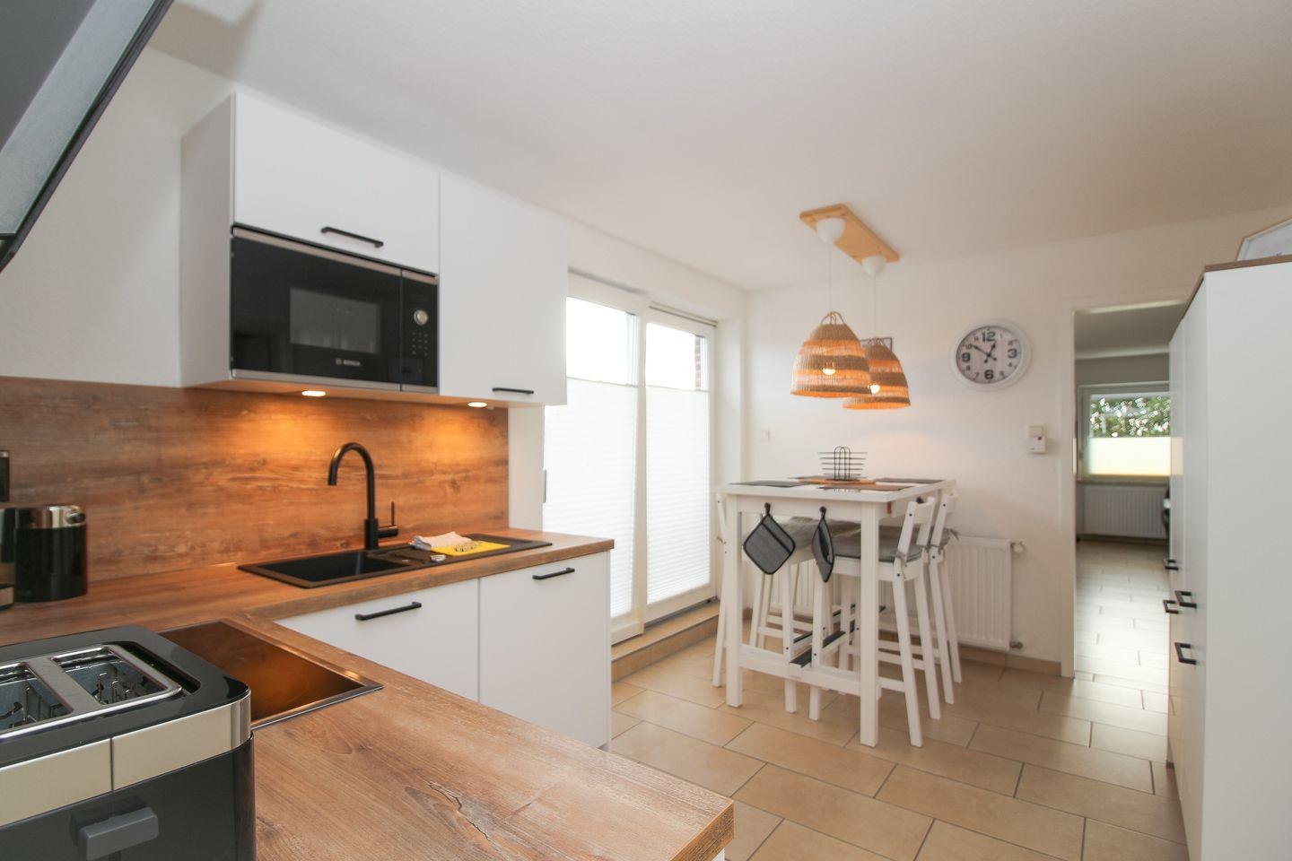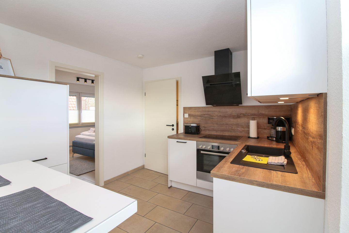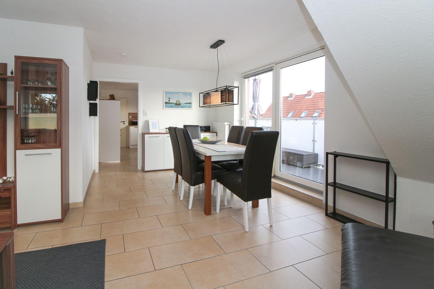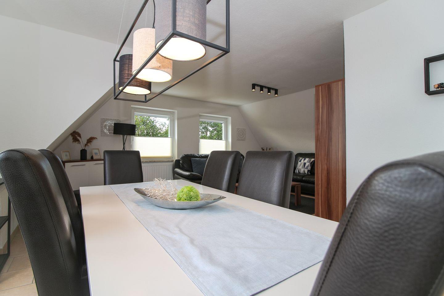 Über eine Außentreppe gelangen Sie zu unserem liebevoll eingerichteten Ferienapartment mit 2 Schlafzimmern. Die Ferienwohnung Riff V bietet einen äußerst großzügigen Und falls das Wetter doch noch zu einem Abendspaziergang lockt, ist der Deich nur wenige Meter entfernt.