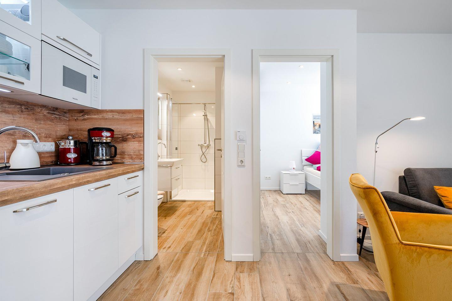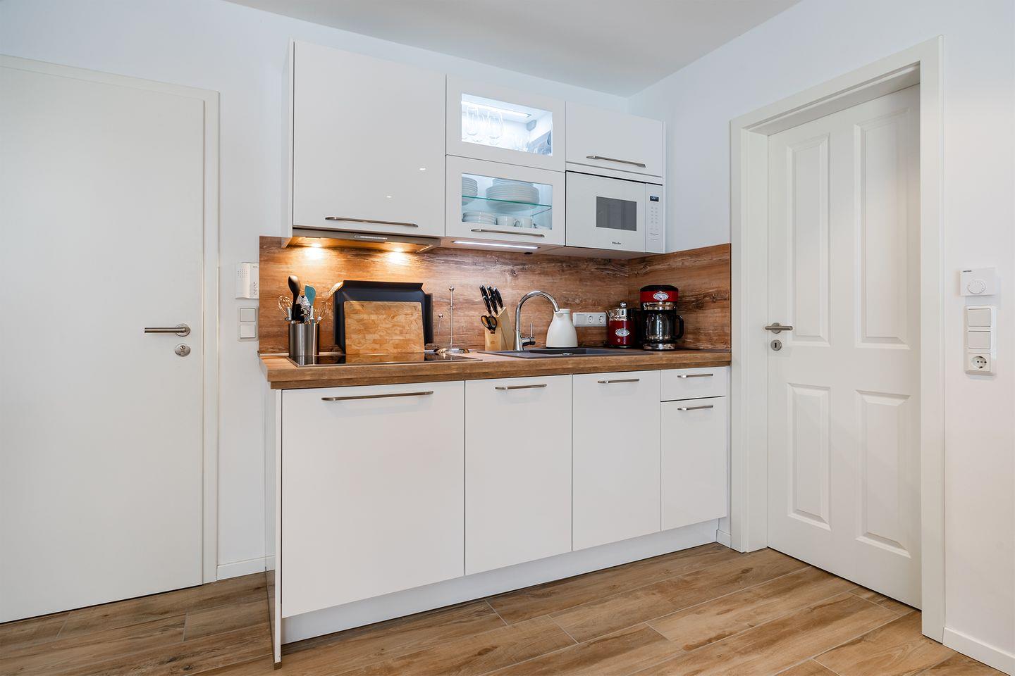 Bitte beachten Sie: Die Wohnung verfügt über keinen Backofen, es steht eine Mikrowelle mit Backfunktion zur Verfügung.