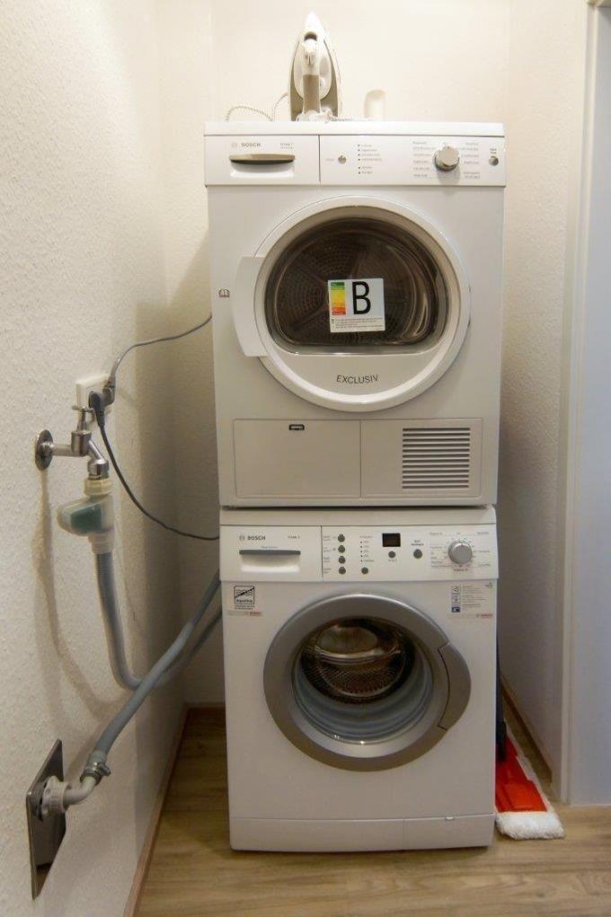 Im Abstellraum der Unterkunft finden Sie neben der Waschmaschine auch alle weiteren nützlichen Haushaltsutensilien von Staubsauger und Kehrblech über einen Wäscheständer bis hin zu Bügelbrett und -eisen.
