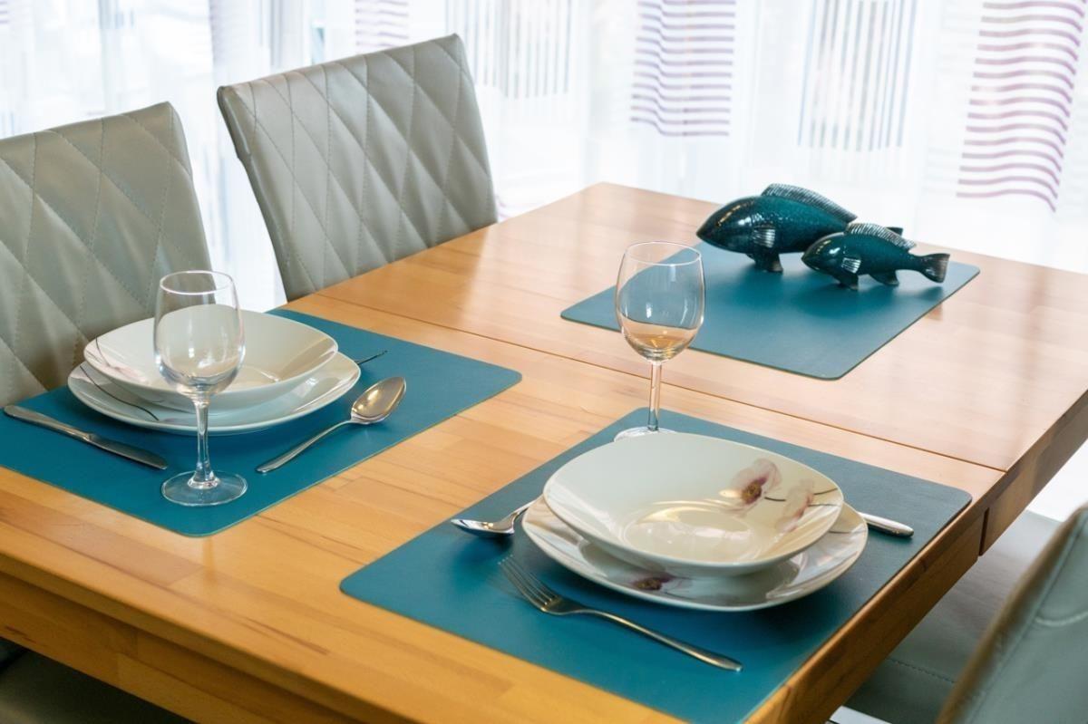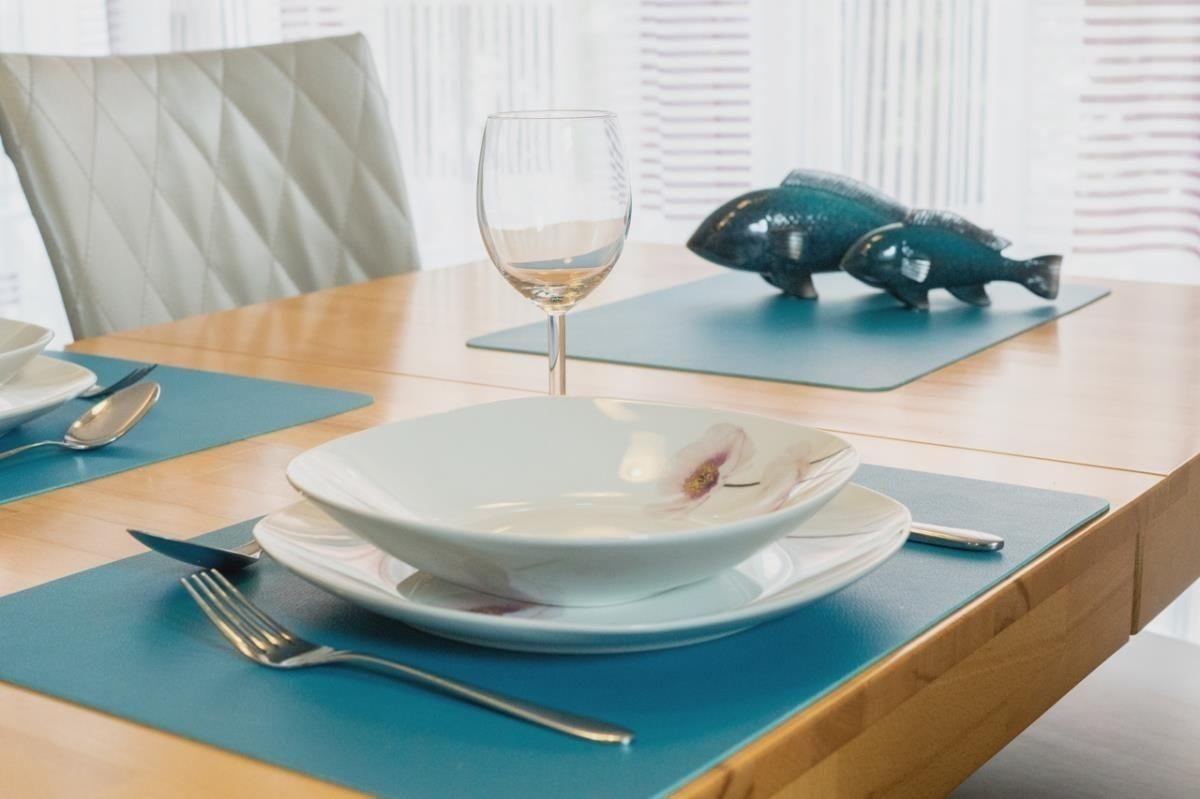 Der komfortable Esstisch bietet Ihnen genügend Platz, um einen Kinderhochstuhl zuzustellen.