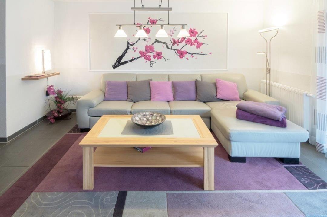 Mittelpunkt Ihres Urlaubs ist der attraktive Wohnraum. Eine einladende Ledercouch trifft hier auf den großzügigen Essplatz und die hervorragend ausgestattete Einbauküche der Wohnung.