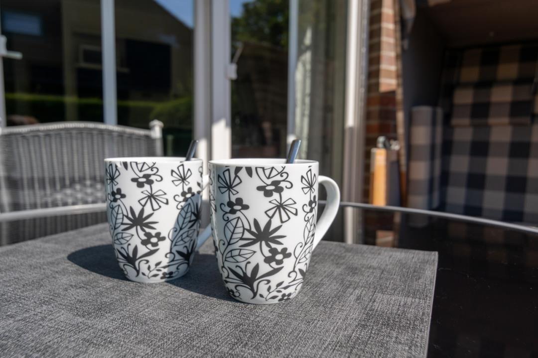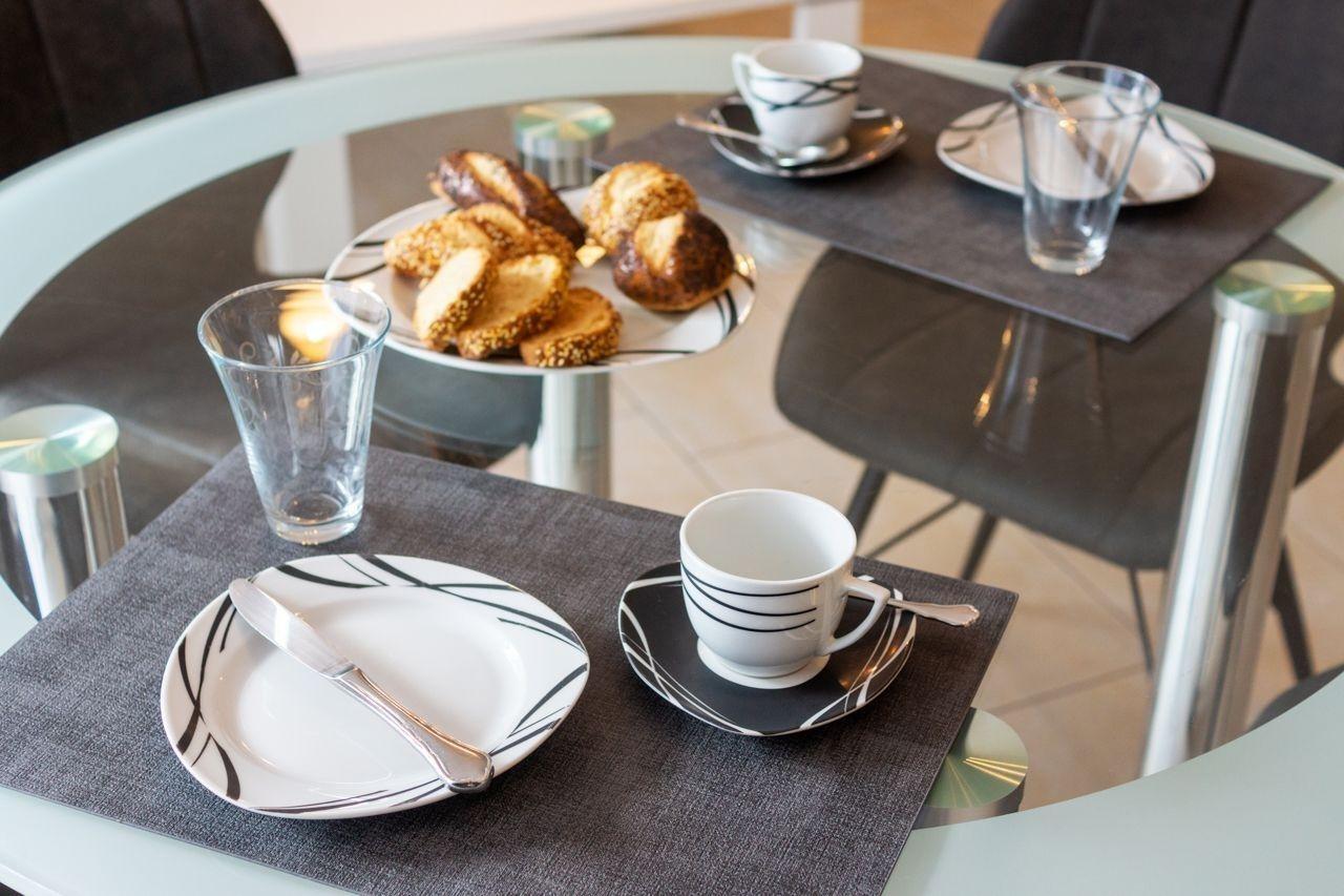 An Sommertagen können Sie als Gast der Wohnung Ihren ganz eigenen Sonnenplatz genießen. Zur Unterkunft gehört eine Terrasse, die dank ihrer südöstlichen Ausrichtung bereits pünktlich zum Frühstück Sonne bietet. Eine aus Tisch und Stühlen bestehende Sitzgruppe sorgt für zusätzlichen Komfort auf der Terrasse.
