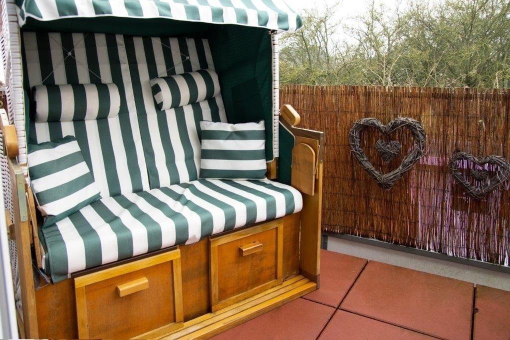 Als ganz besonderes Highlight verfügt diese Wohnung auf dem Balkon über einen gemütlichen Strandkorb sowie Gartenmöbel, damit Sie viele Sonnenstunden Wind geschützt genießen können. Die Abstellräume hinter dem Haus stehen jeder Wohnung zur Verfügung. Am Haus ist ebenfalls ein Autostellplatz vorhanden.