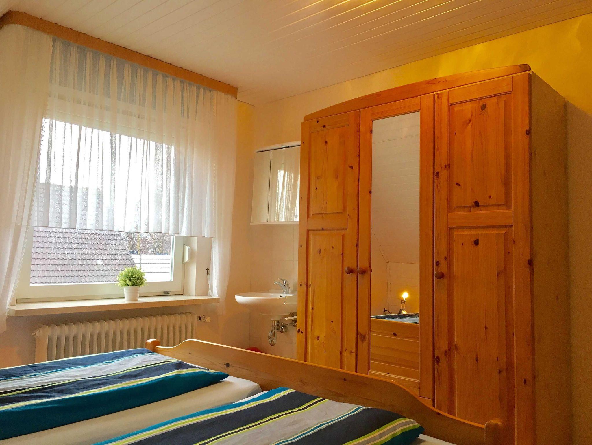 Die Wohnung ist aufgeteilt in 2 Schlafzimmer eines davon mit Kinderbett. Das Wohnzimmer mit Esstisch ist hell und freundlich eingerichtet. Die große Wohnküche ist mit allen wichtigen Untensilien eingerichtet und bietet Ihnen genug Platz, ein 2. Fernseher ist in der Küche vorhanden.