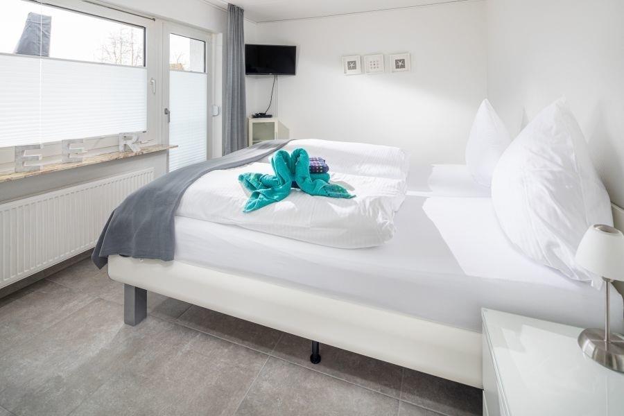 Allergiker gerechte Ausstattung, mit Kopfkissen und Oberbetten aus kochfester Mikrofaser, hochwertigen Markenmatratzen mit Encasing. Doppelbett in Übergröße und Komforthöhe für einen bequemen Ein- und Ausstieg.