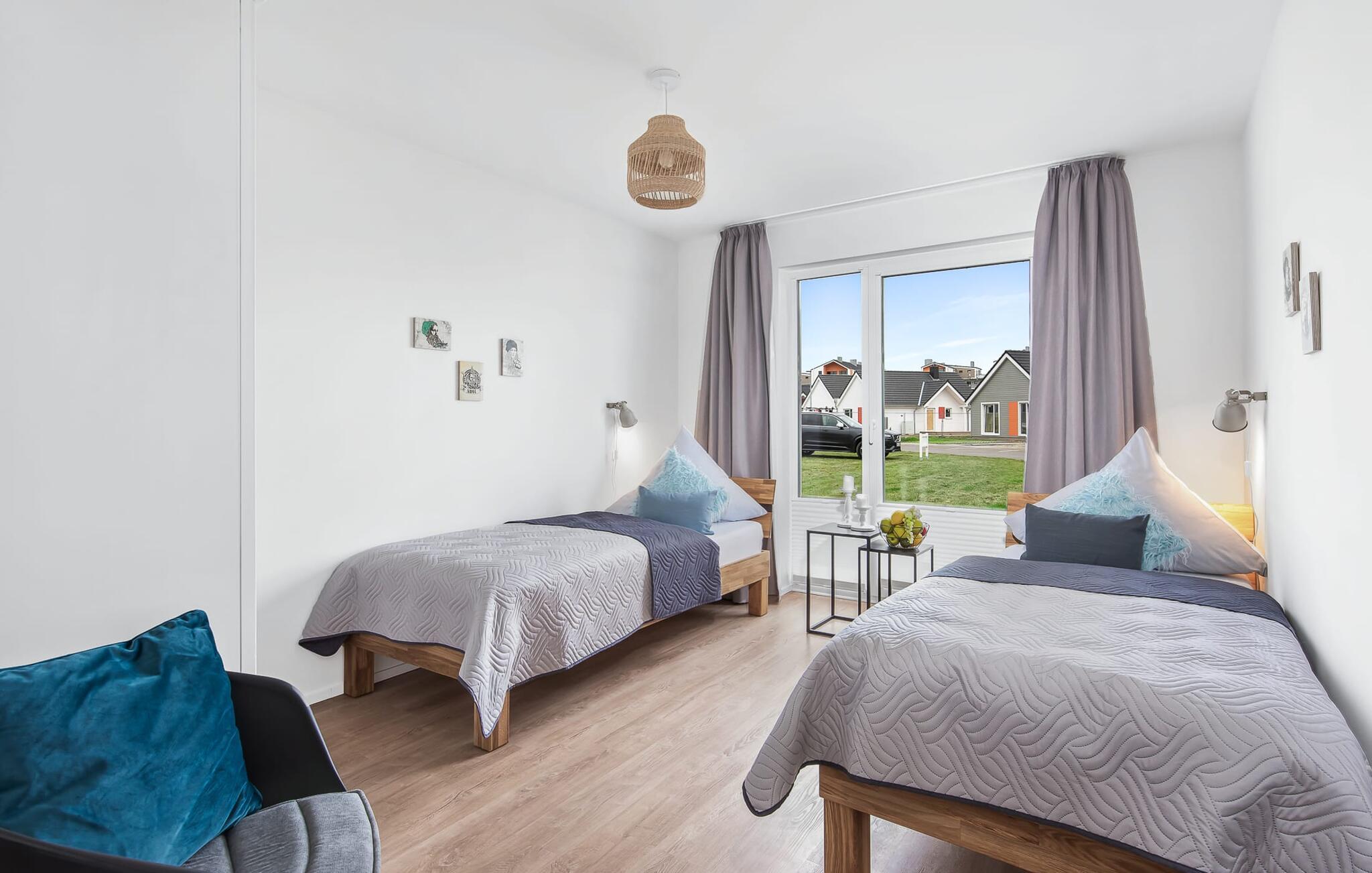 NORDEN ferielejligheden byder jer velkommen med maritime møbler. Derudover udstråler de smukke massive træmøbler en stor følelse af komfort. Den åbne stue/spisestue byder på alt hvad I behøver for en afslappende tid, og fjernsynet sørger for hyggelige timer, når vejret bliver dårligt. Madlavning er rigtig sjovt i det optimalt udstyrede køkken og det smager dobbelt så godt på den tilstødende solrige terrasse. Det rummelige grønne område omkring huset byder på masser af plads og indbyder til solbadning, leg og afslapning. I kan også slappe dejligt af i den komfortable boxmadrasser i det første soveværelse. Der er to enkeltsenge til rådighed i det andet soveværelse. Begge værelser byder på masser af skabsplads. Et højdepunkt i NORDEN er uden tvivl badeværelset med spabad og infrarød sauna, som gør det til et lille privat wellness-område. De øvrige faciliteter lader heller intet tilbage at ønske til en afslappende wellness-dag. Til lejligheden hører to private parkeringspladser direkte ved huset og et aflåseligt cykelskur.