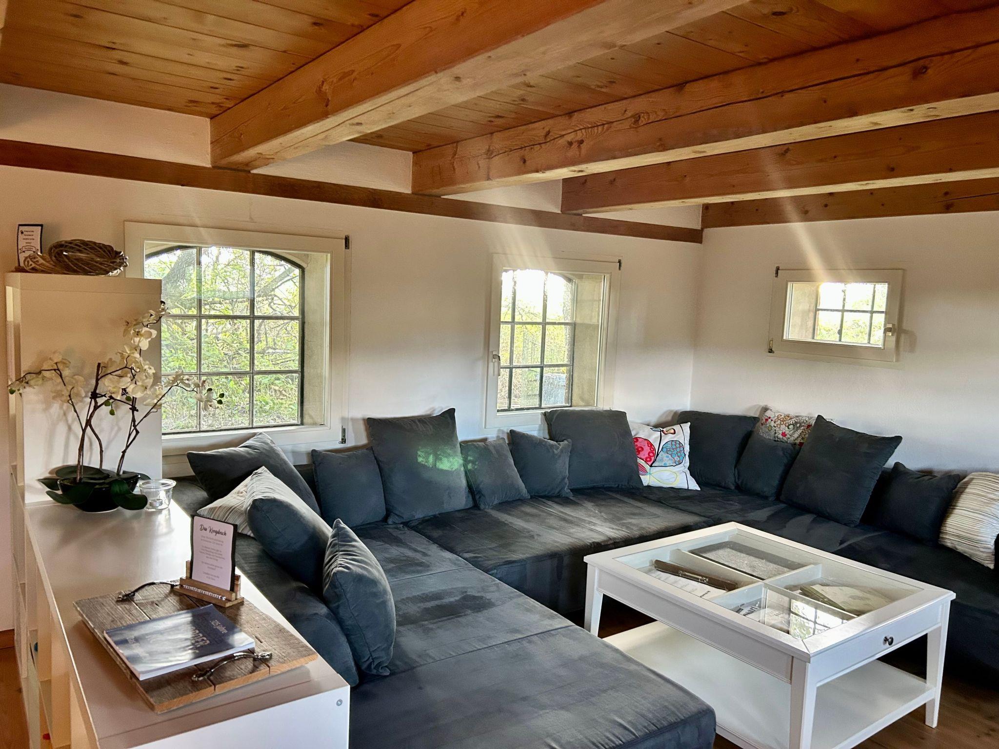 The large garden with mature trees, terraces facing the countryside and the water, as well as a wooden shed, and the large site with, invite you to spend time outdoors. Sun loungers, a parasol, garden tables and chairs are provided. Children will find plenty of space to play, climb and explore (e.g. play football or in the sandpit with toys next to the terrace), or you can enjoy the breeze on one of our tree swings.