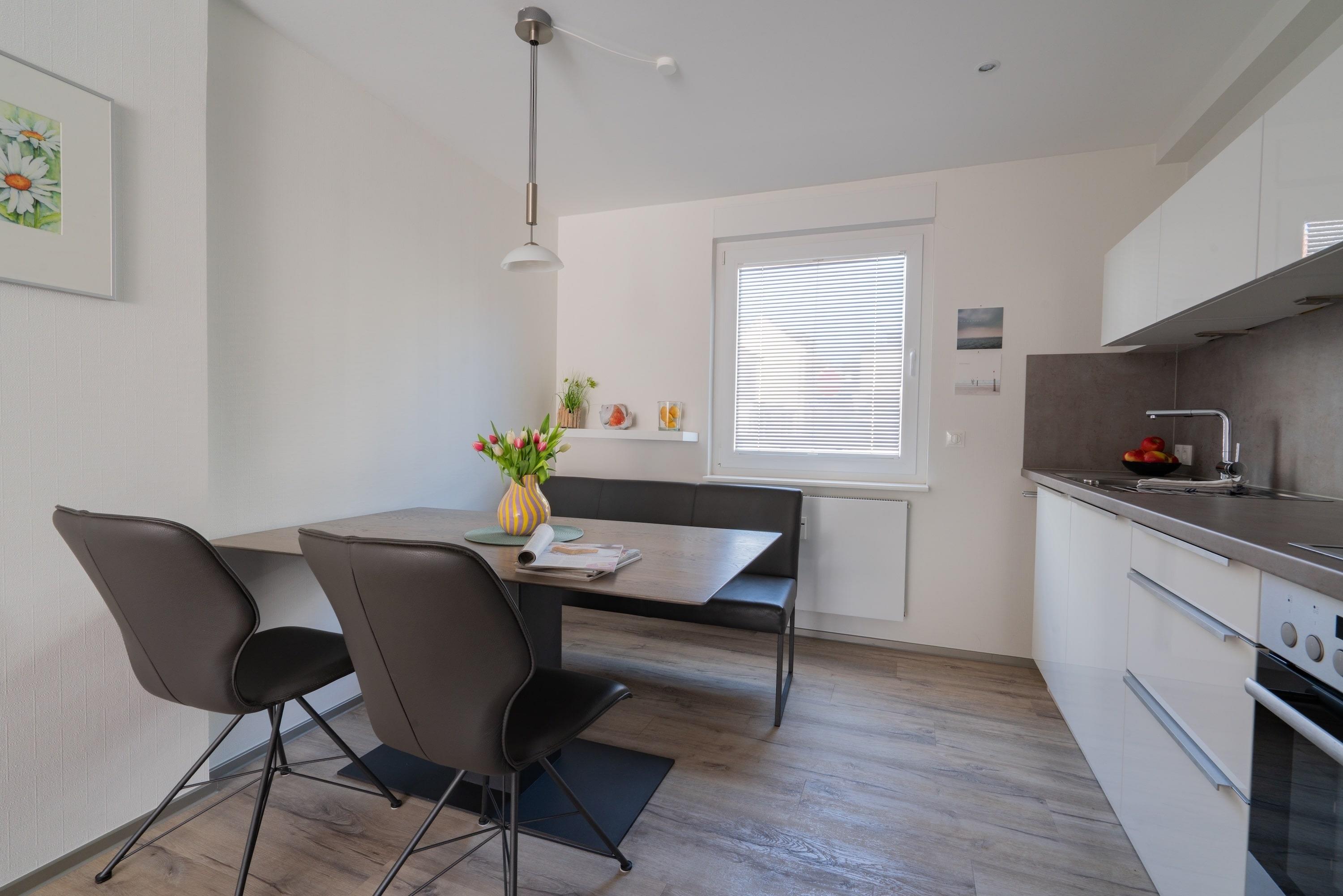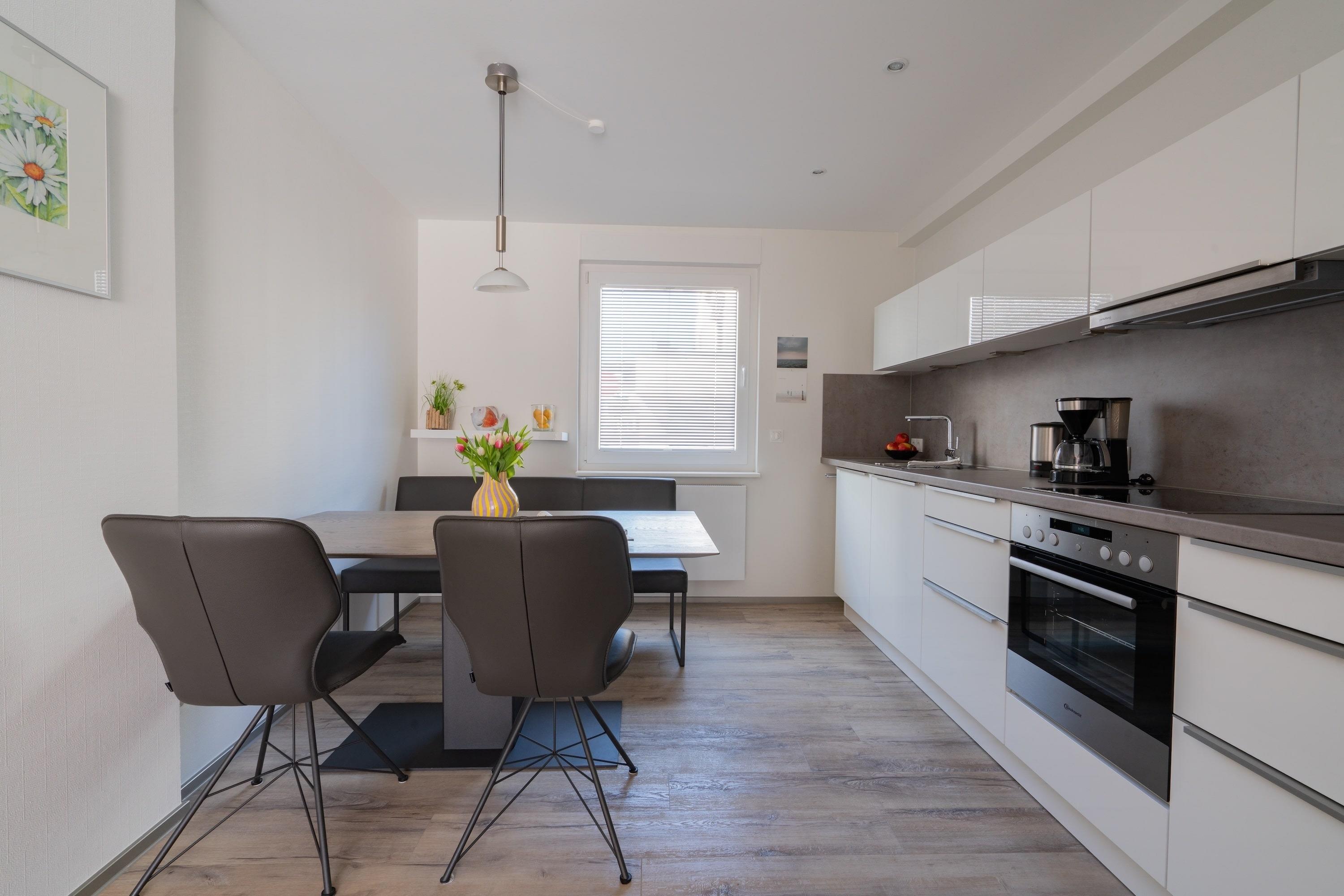 Die offene Küche ist nicht nur funktional, sondern auch stilvoll eingerichtet: Mit Backofen und Senseo-Kaffeemaschine starten Sie genussvoll in jeden Urlaubstag. Und für eine Pause an der frischen Luft bieten die zwei geschützten Balkone zum Innenhof echte Ruheoasen mitten im lebendigen Zentrum.
