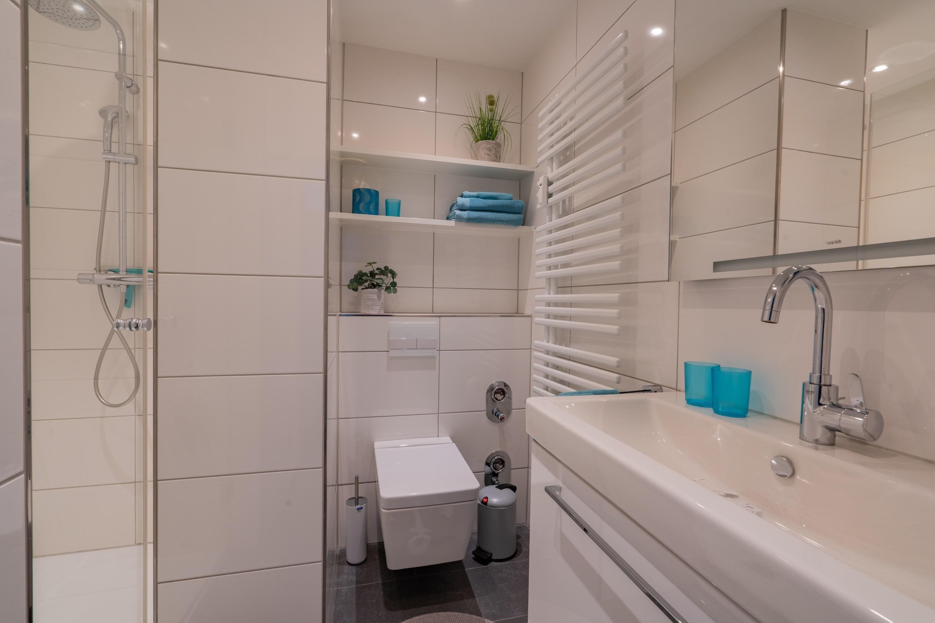 Das moderne Badezimmer rundet den Komfort ab – alles da für eine entspannte Auszeit.