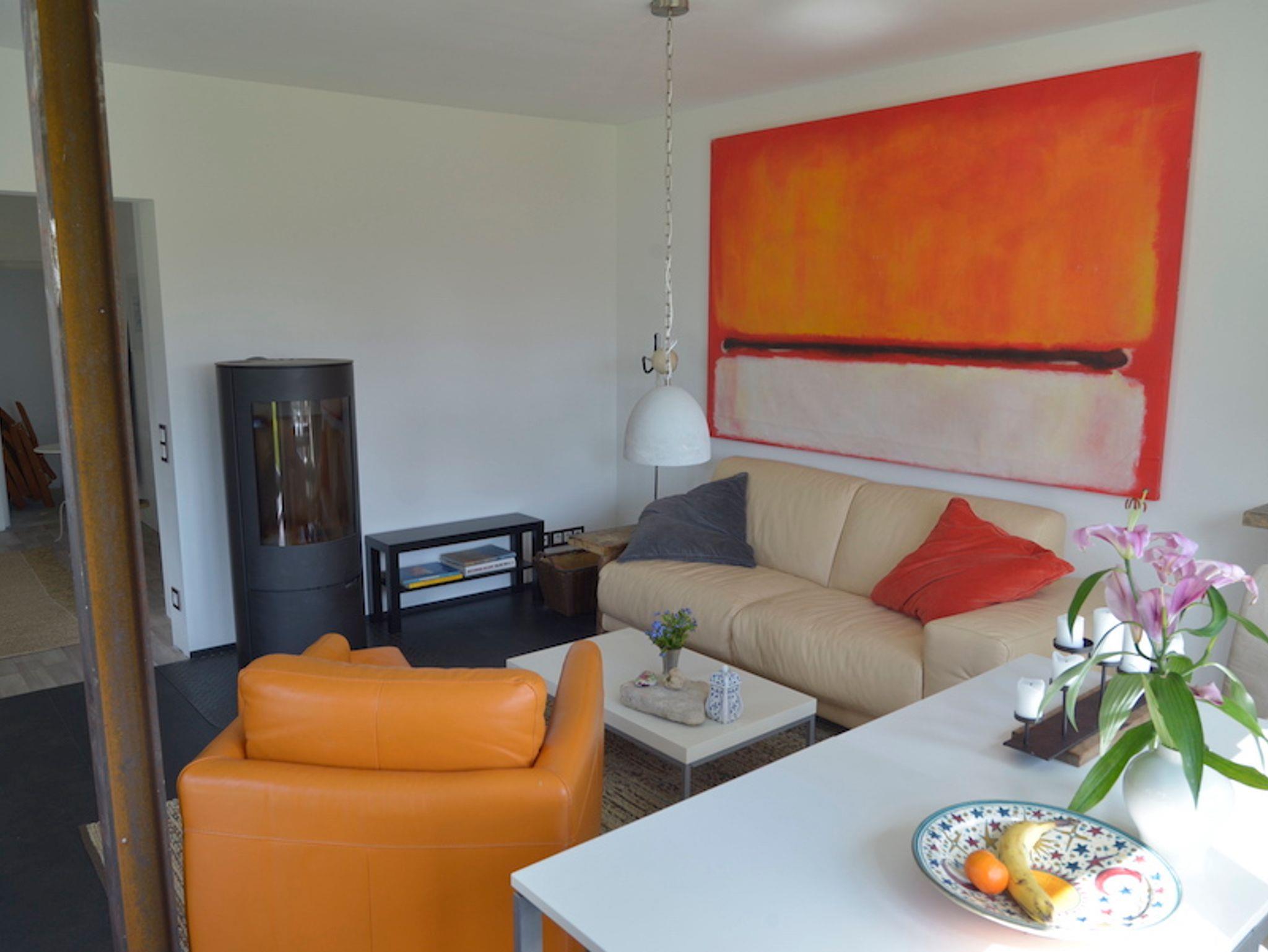 Dieses barrierefreie Apartment bietet auf 65qm komfortablen Wohnraum für einen entspannten Aufenthalt. Es verfügt über ein Schlafzimmer mit zwei Betten sowie eine zusätzliche Schlafcouch und eignet sich ideal für Paare oder kleine Familien. Bettwäsche und Handtücher sind im Aufenthalt inbegriffen. Die gut ausgestattete Küche mit Geschirrspülmaschine, Backofen und Herd ermöglicht unkomplizierte Selbstverpflegung. Das moderne Duschbad ist mit einer ebenerdigen Dusche ausgestattet. Für angenehme Wärme sorgen eine Zentralheizung und ein Kaminofen. Die eigene Südterrasse mit Blick auf die Wiese und gemütlichen Gartenmöbeln lädt zum Verweilen im Freien ein.