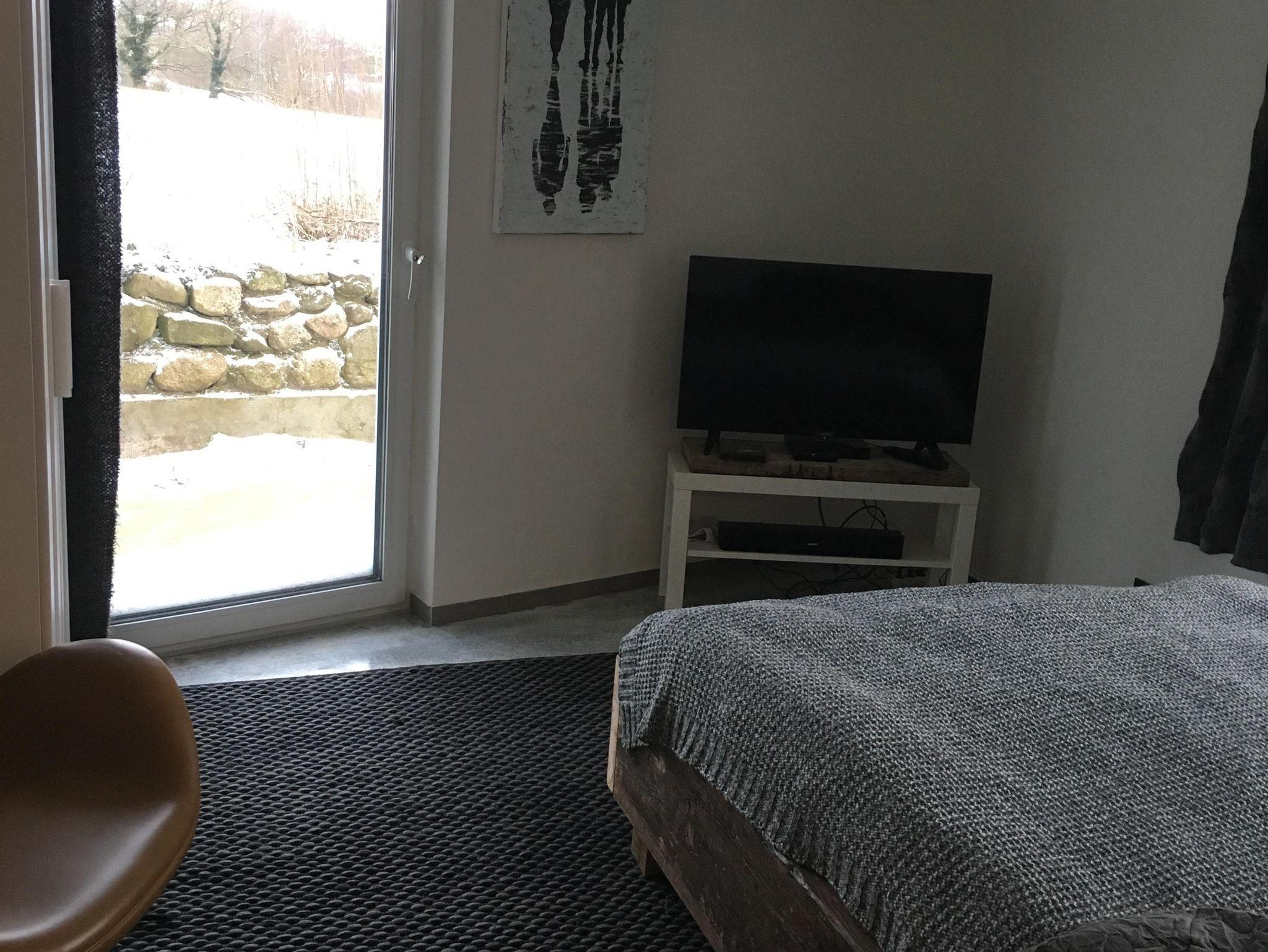 Dieses barrierefreie Apartment bietet auf 89qm viel Platz und Komfort für einen erholsamen Aufenthalt. Mit zwei Schlafzimmern und insgesamt zwei Betten sowie einer zusätzlichen Schlafcouch eignet es sich hervorragend für Familien oder kleine Gruppen. Bettwäsche und Handtücher sind im Preis enthalten. Die moderne Küche ist mit Geschirrspülmaschine, Backofen und Herd ausgestattet und ideal für die Selbstverpflegung. Das Duschbad verfügt über eine ebenerdige Dusche und sorgt für zusätzlichen Komfort. Zentralheizung und ein Kaminofen schaffen eine angenehme Atmosphäre, auch an kühleren Tagen. Zwei Südterrassen mit Blick ins Grüne und gemütlichen Gartenmöbeln laden zum Entspannen im Freien ein.