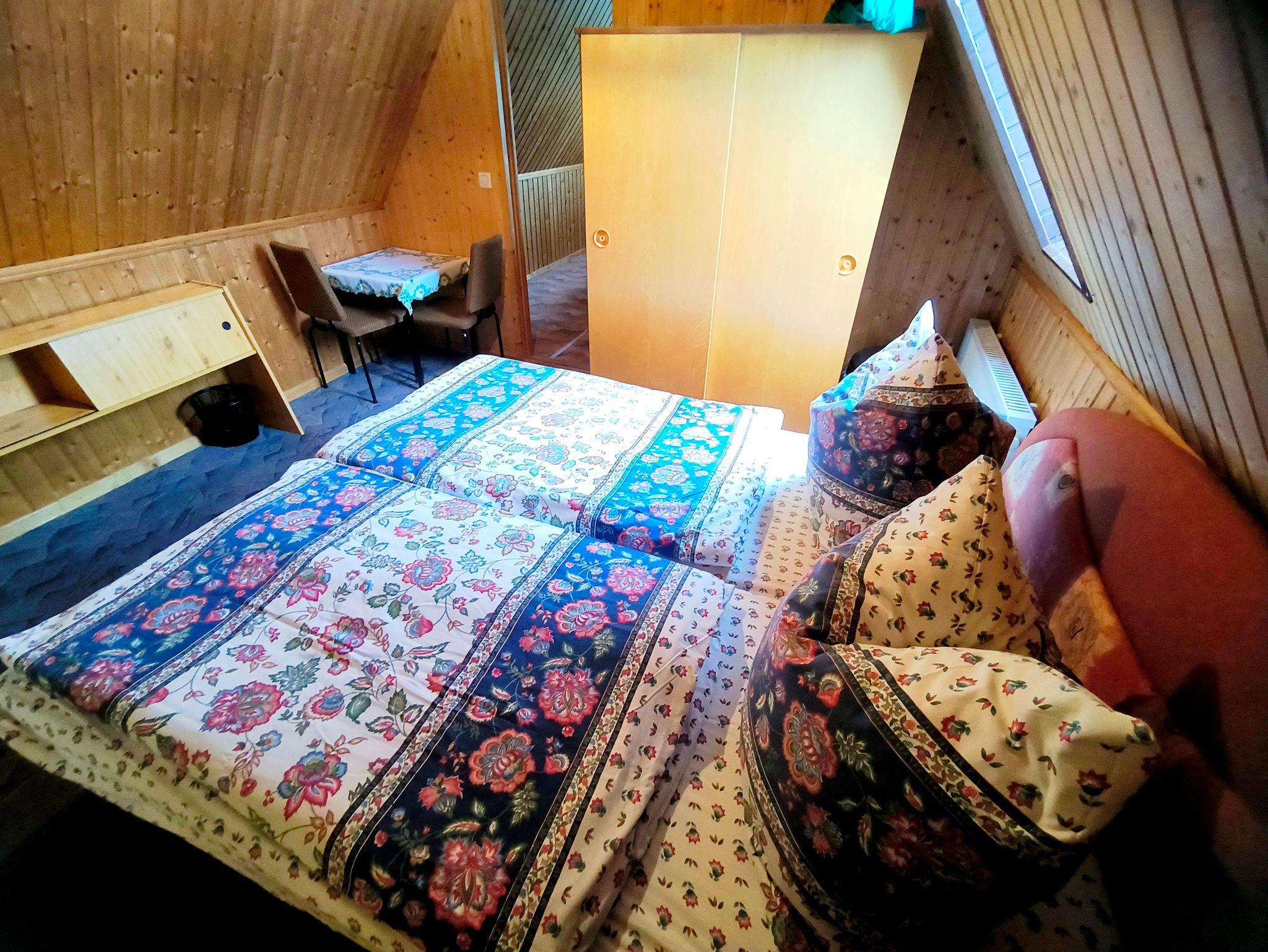 Im Obergeschoss erreichen Sie über eine Treppe zwei einladende Schlafzimmer. Das erste Schlafzimmer (Durchgangszimmer) ist mit einem Doppelbett ausgestattet. Das zweite Schlafzimmer verfügt ebenfalls über Doppelbett sowie einen Kleiderschrank und eine kleine Sitzecke.
