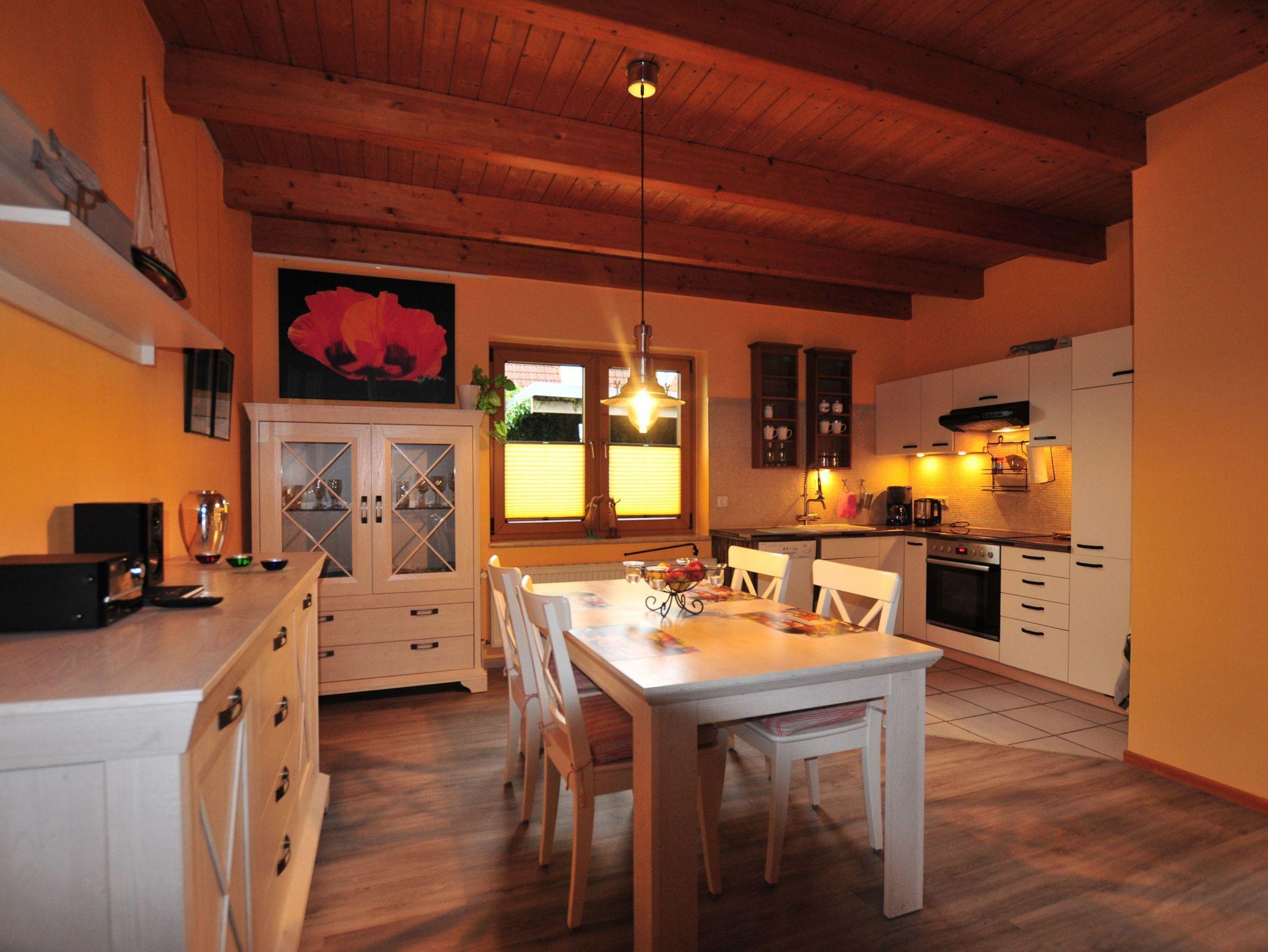 Einen Wohn/ Essraum mit eigener Küche. In der Küche ist vorhanden: Kühlschrank, Ceranfeld-Herd, Backoffen, Wrasenabzug, Toaster, Kaffee/ Espressomaschine, Wasserkocher u. Geschirrspüler.