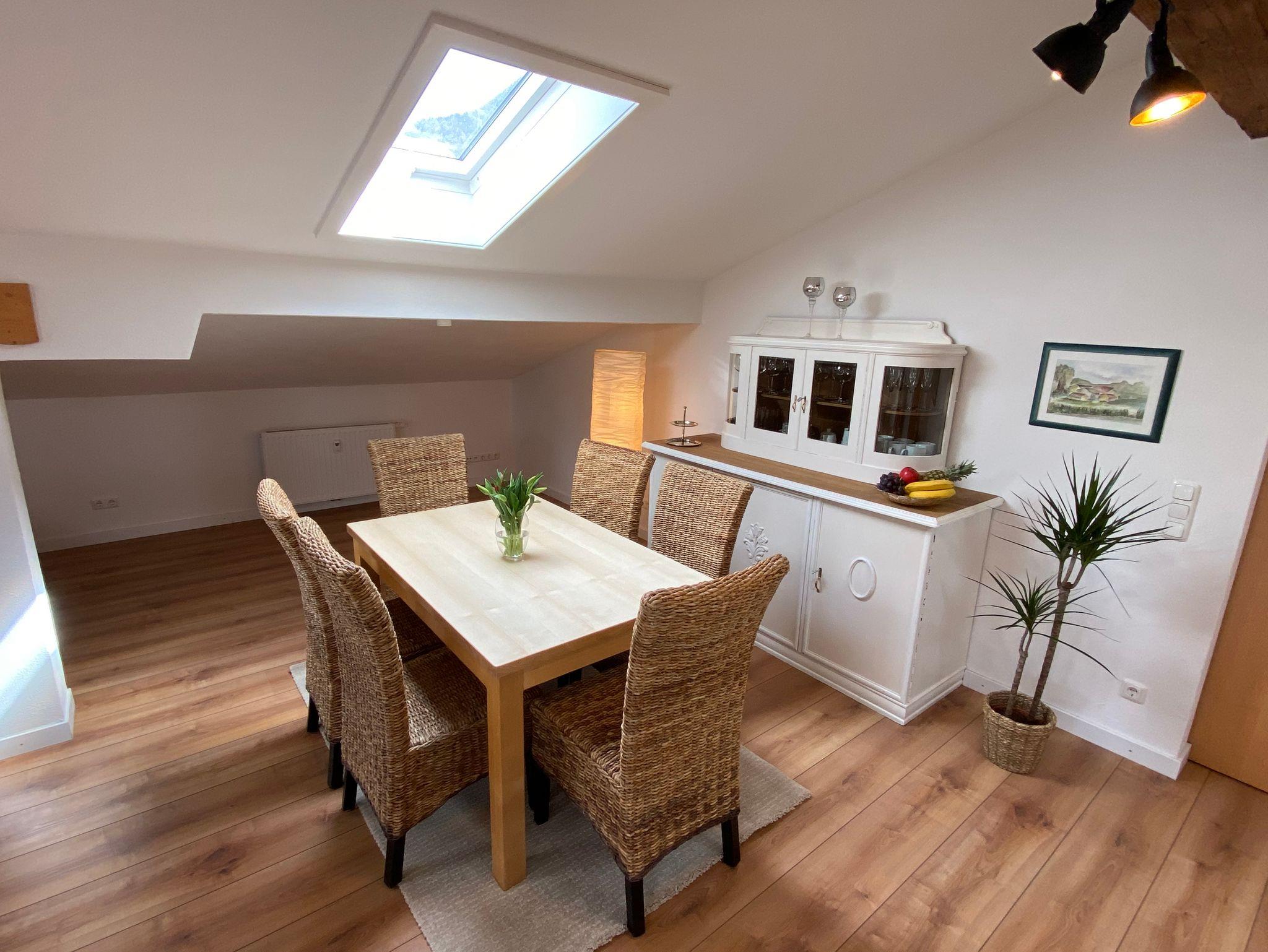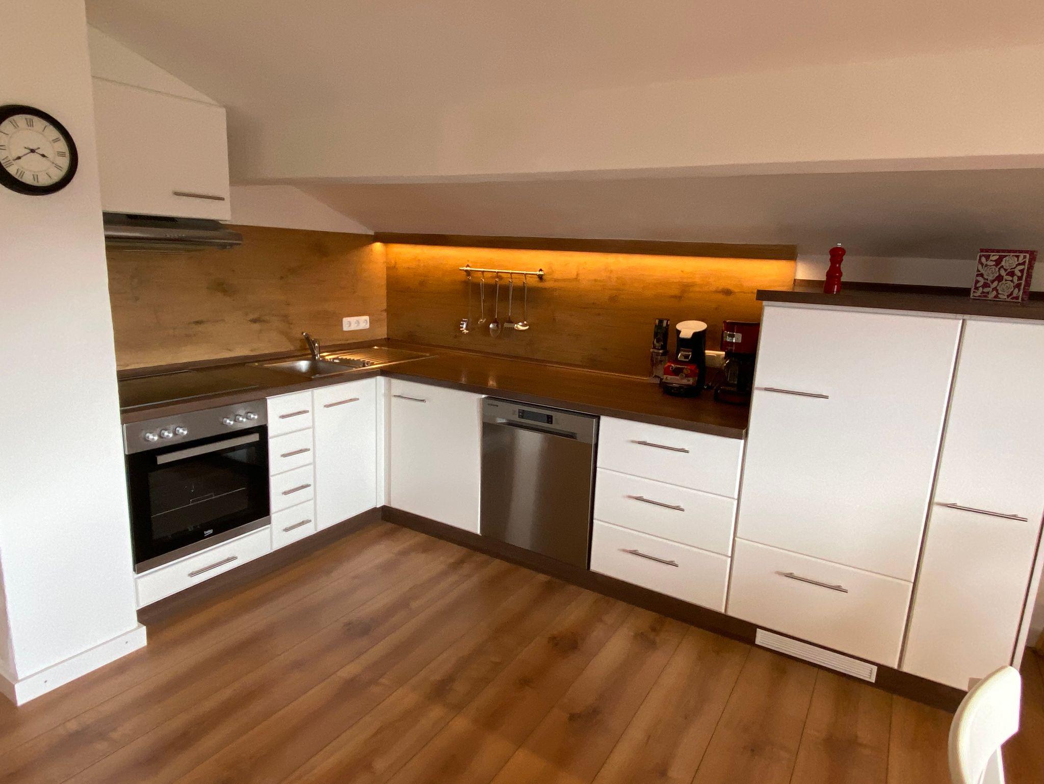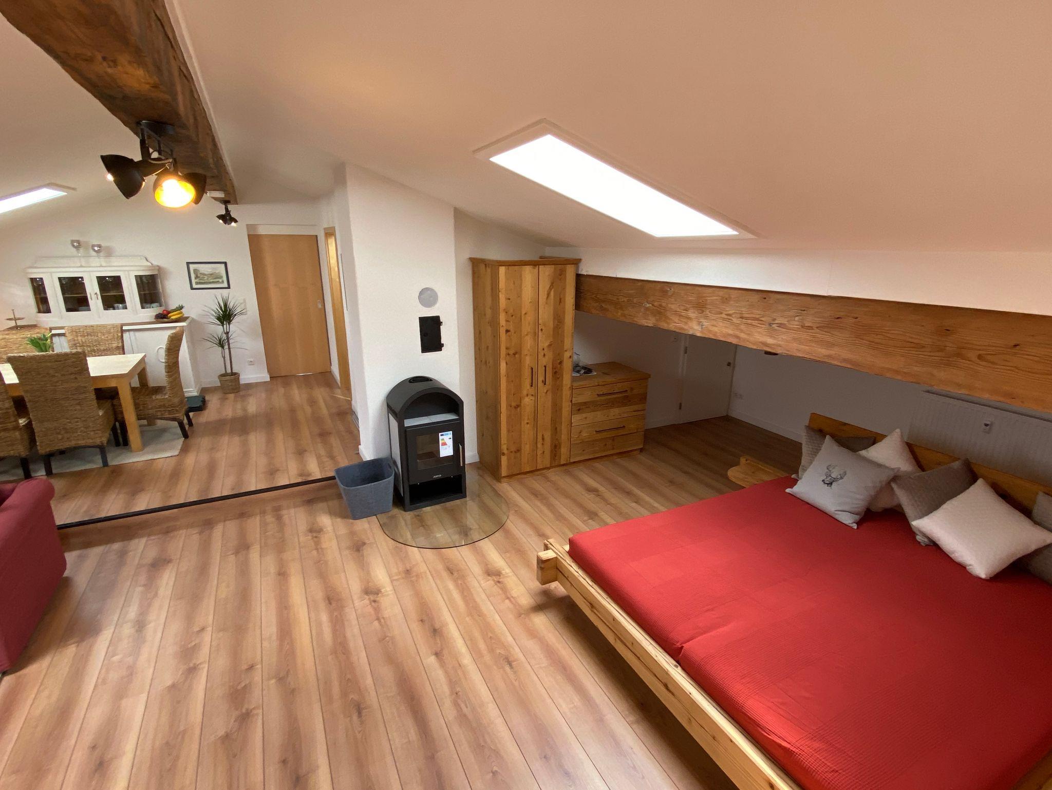 Unsere idyllisch gelegene Ferienwohnung am Fuße des Heubergs, erreichen Sie über eine Außentreppe mit eigenem Eingang. Die gemütliche Dachgeschosswohnung erstreckt sich auf ca. 125 qm & bietet Platz für bis zu 5 Personen. In der erstklassig ausgestatteten Wohnküche finden Sie alles was Sie für ein gemeinsames Frühstück, Mittag- & Abendessen mit Ihren Liebsten benötigen. Über die Küche erreichen Sie den sonnigen Balkon mit herrlichem Blick auf den Heuberg, der zum Entspannen einlädt. Nebenan wartet das komfortabel eingerichtete Elternschlafzimmer aus Zirbenholz mit TV, das ebenfalls Zugang zum Balkon auf der Südseite bietet. Unsere Wohnung verfügt über ein großzügiges Badezimmer mit WC, Handtuchwärmer, Föhn, Dusche & Badewanne sowie einem separatem WC. Das Herzstück der Wohnung ist unser offen gestalteter Wohnbereich mit schönen Sichtbalken, einem kleinen Schwedenofen und Zugang zum kleinen Balkon auf der Nordseite. In diesem Bereich unserer Immobilie finden Sie einen abgetrennten behaglichen Schlafbereich mit Doppelbett, sowie eine Wohnlandschaft mit Schlaffunktion und TV.