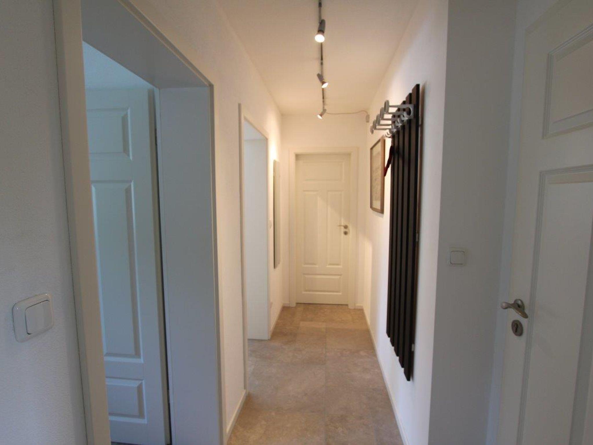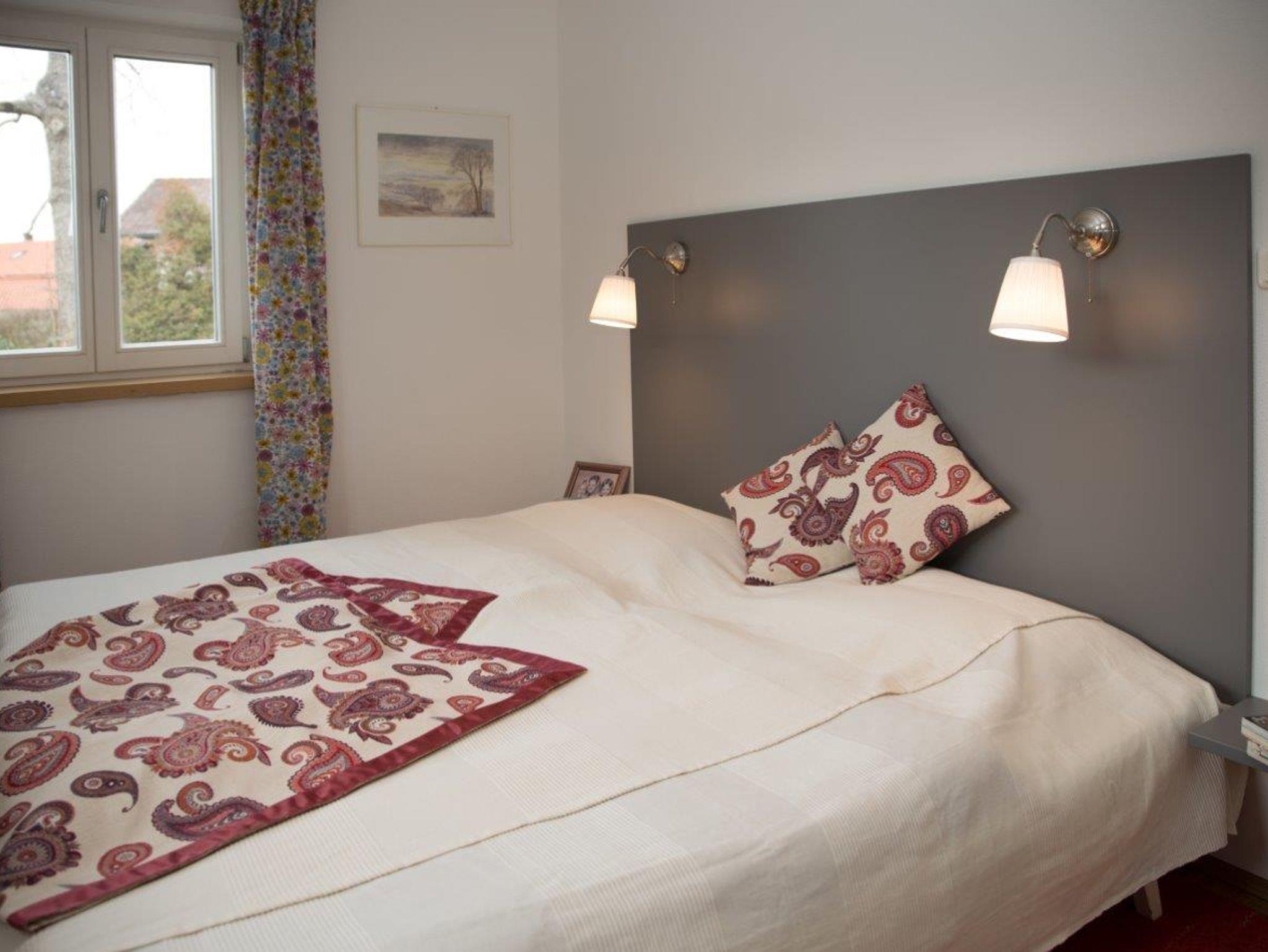 2015 fertiggestellte Ferienwohnung in ruhiger Lage. Über den Wohn- und Essbereich gelangt man direkt auf die Terrasse mit Gartenanteil zum Entspannen. Wer im Urlaub Lust auf Kochen verspürt, findet eine sehr gut ausgestattete Küche, mit Geschirrspüler und Mikrowelle, vor. Fahrräder bzw. Sportausrüstung (z. B. Ski etc.) können im Haus separat und sicher ungergebracht werden. Gastronomie und Einkausmöglichkeit im Ort sind zu Fuß gut erreichbar. Bad mit DU/WC u. Fön, 1 Schlafzimmer und 1 Wohn-/Schlafzimmer, TV, Internet über Wlan/LAN-Verbindung, Parkplatz, 2 Sonneliegen. Wohnung ist bedingt behindertengerecht (schwellenfrei im Wohnbereich), Bettwäsche und Handtücher werden gestellt. Haustiere wegen Allergievermeidung leider nicht möglich.