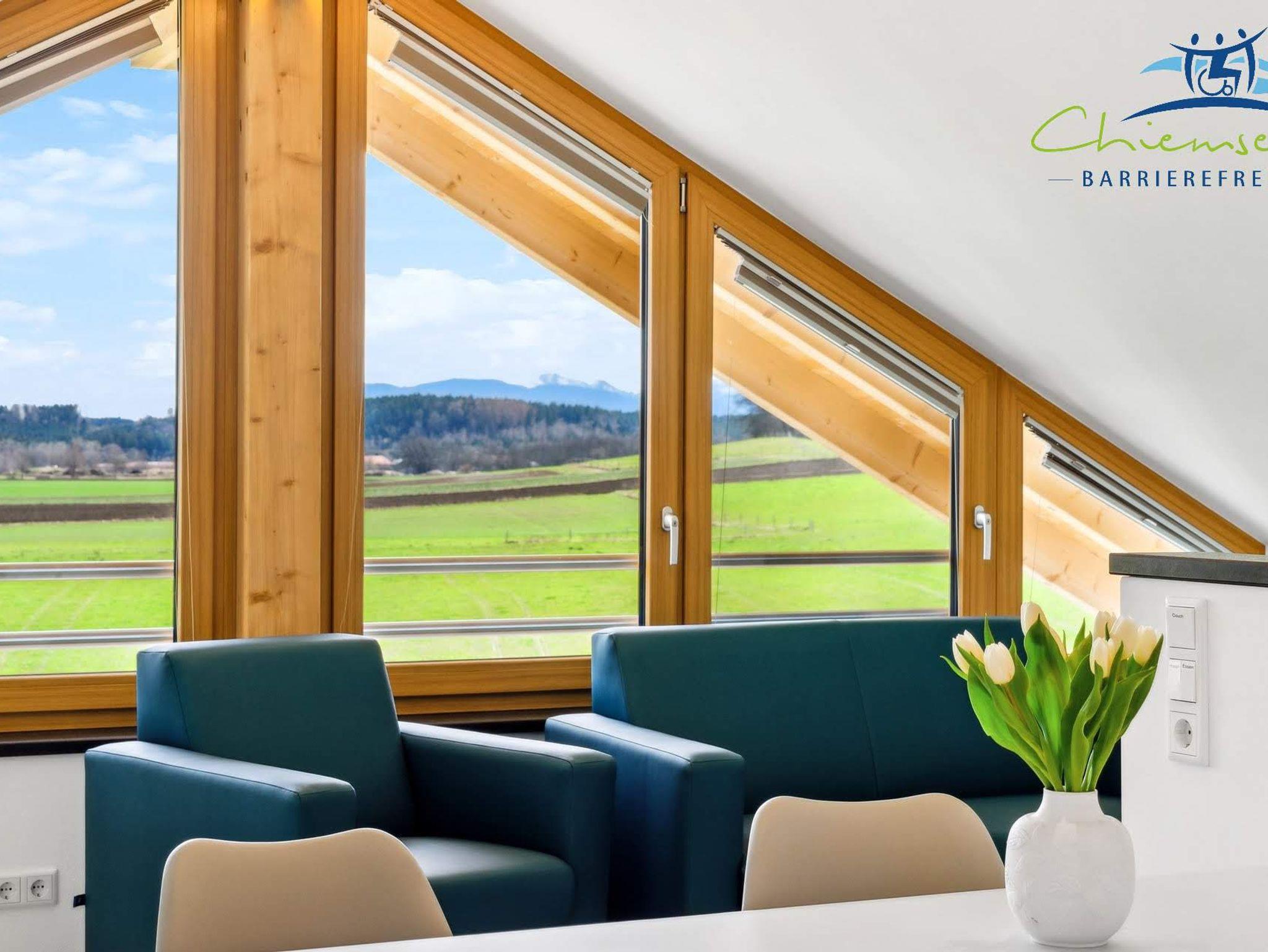 Chiemsee Barrierefrei, Panoramaapartment, bis 4 Personen mit Bergblick