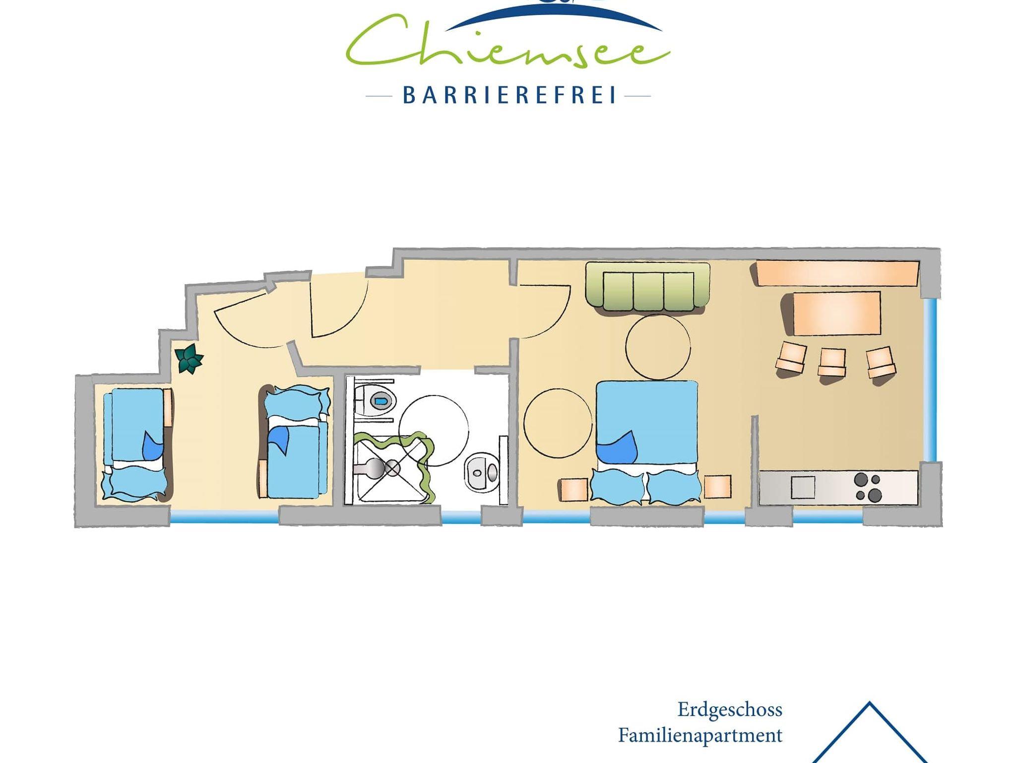 Chiemsee Barrierefrei, Familienapartment, 2 Schlafräume, Barrierefrei