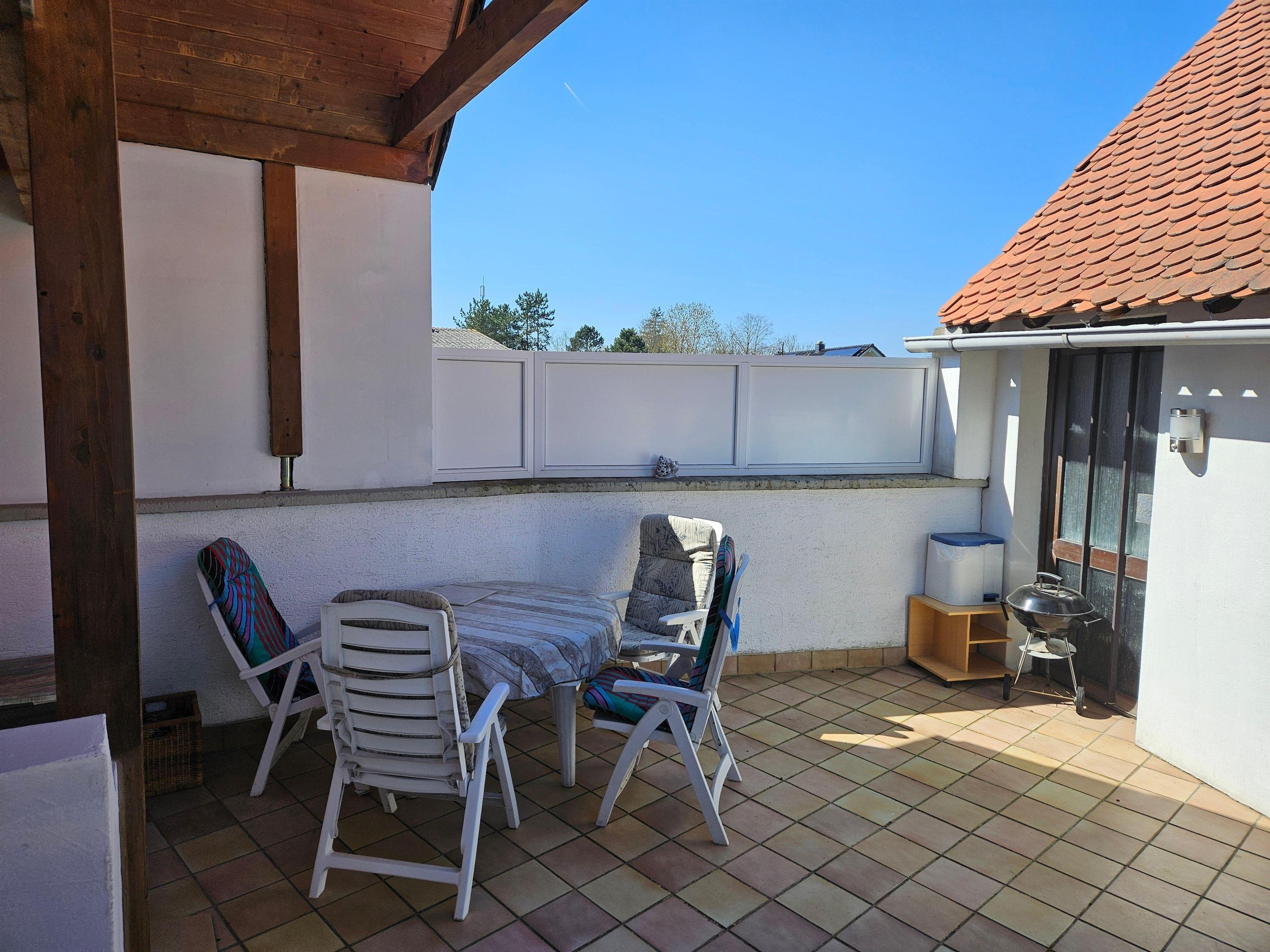 Das Appartement hat einen eigenen Eingang über die Dachterrasse (ca. 15qm), wo Gartenmöbel zum Verweilen einladen.