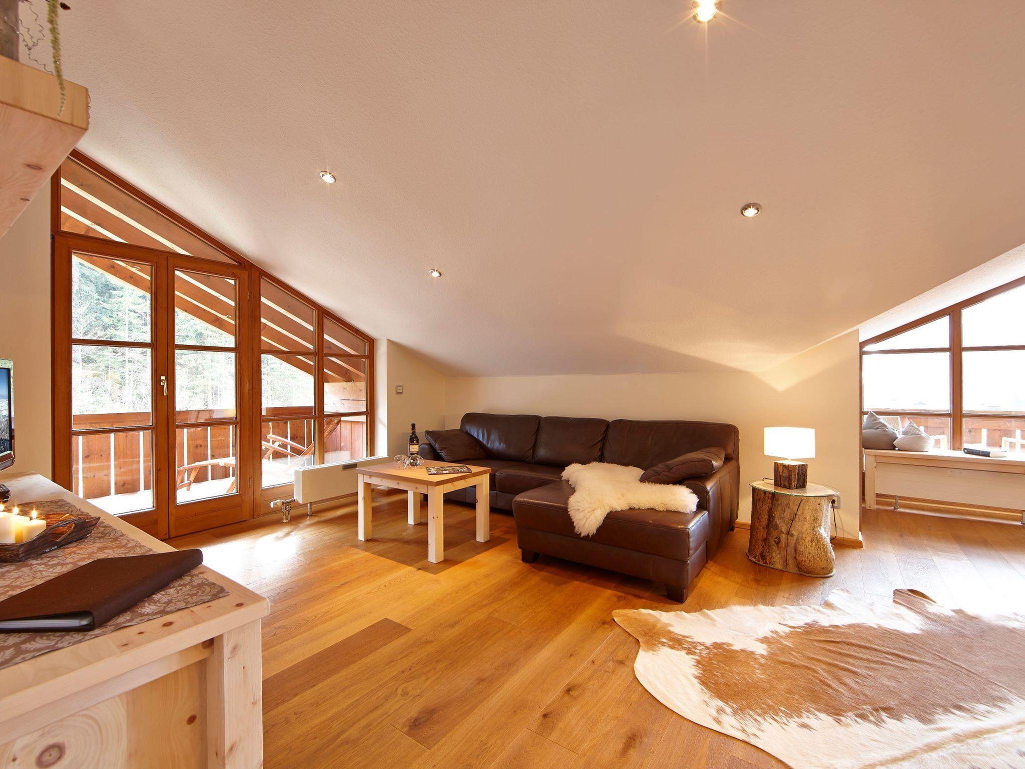 Gemütliche Dachgeschoss-Ferienwohnung (58 m²) mit großem Südbalkon und kleinerem Westbalkon. Einbauküchenzeile offen zum Wohn- und Essraum. Der Wohnbereich ist mit einem hochwertigen Holzdielenboden ausgelegt. Doppelbettzimmer, Bad mit Badewanne und Duschmöglichkeit. Einzelgarage inklusive.