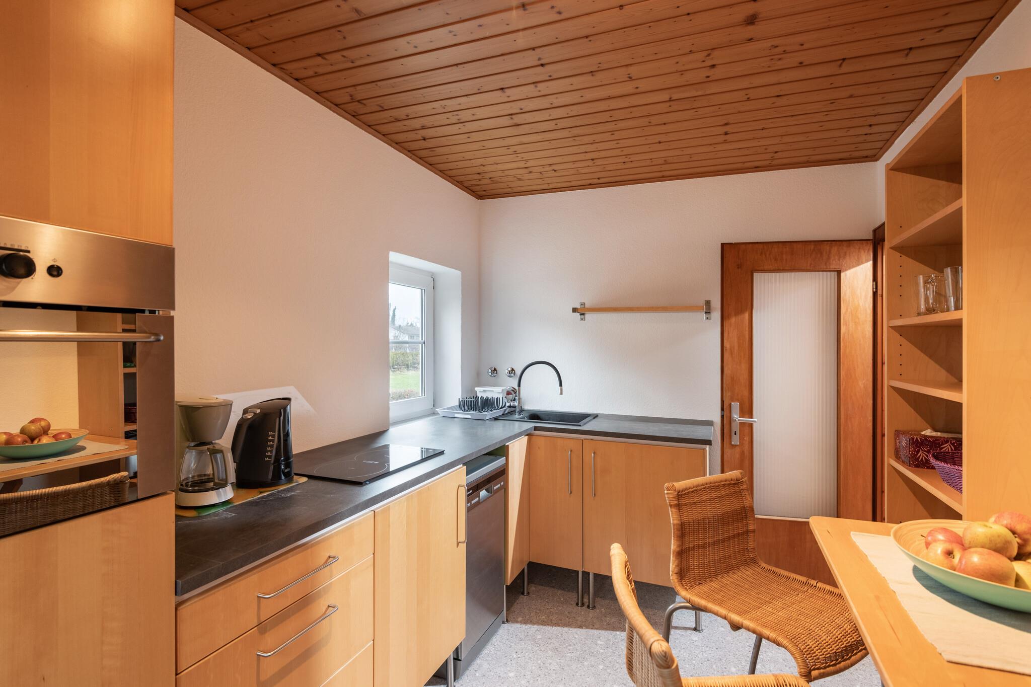 The hiking trail network starts approx. 50 metres behind the house. The entrance to the cross-country ski trail is directly in front of the house. The bakery, butcher and greengrocer's shop are about 7 minutes' walk away.