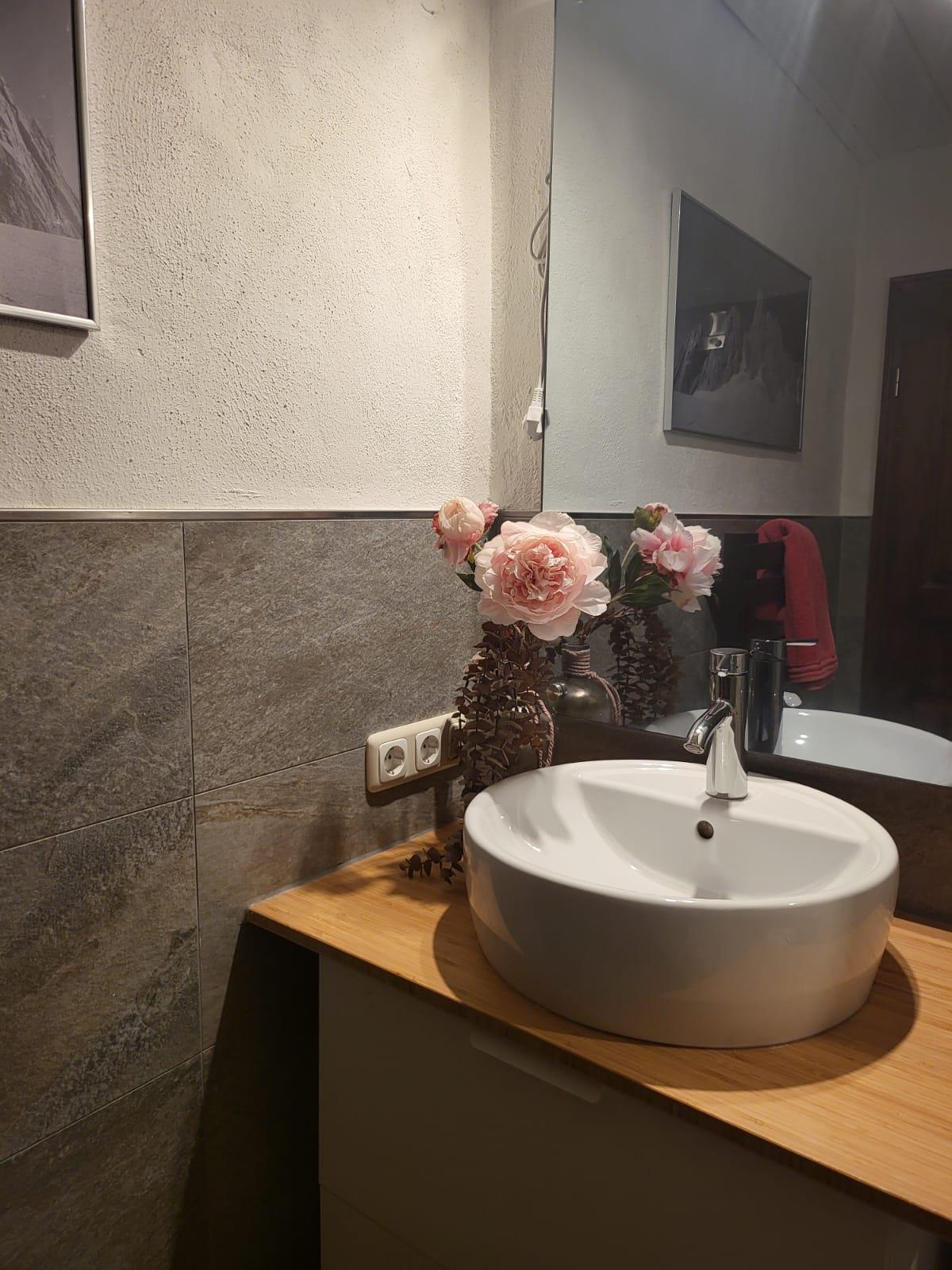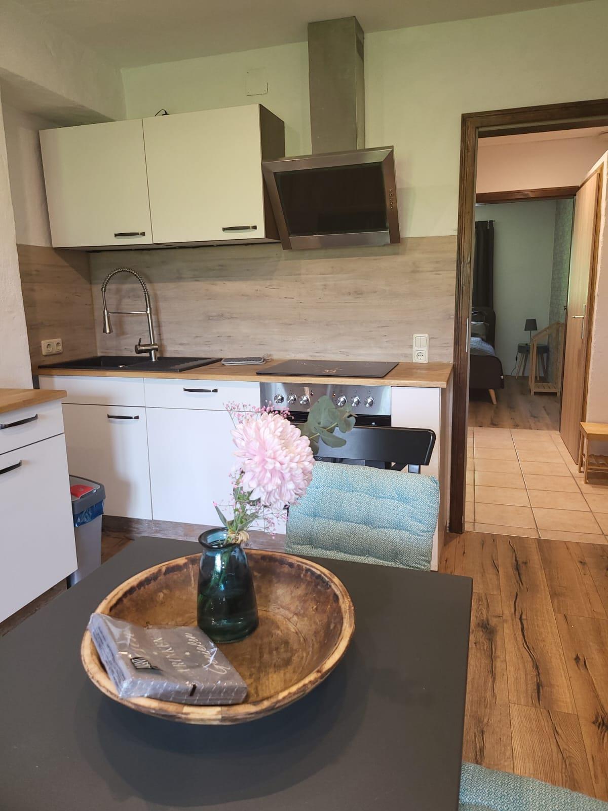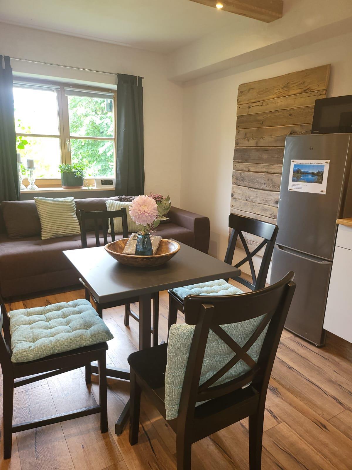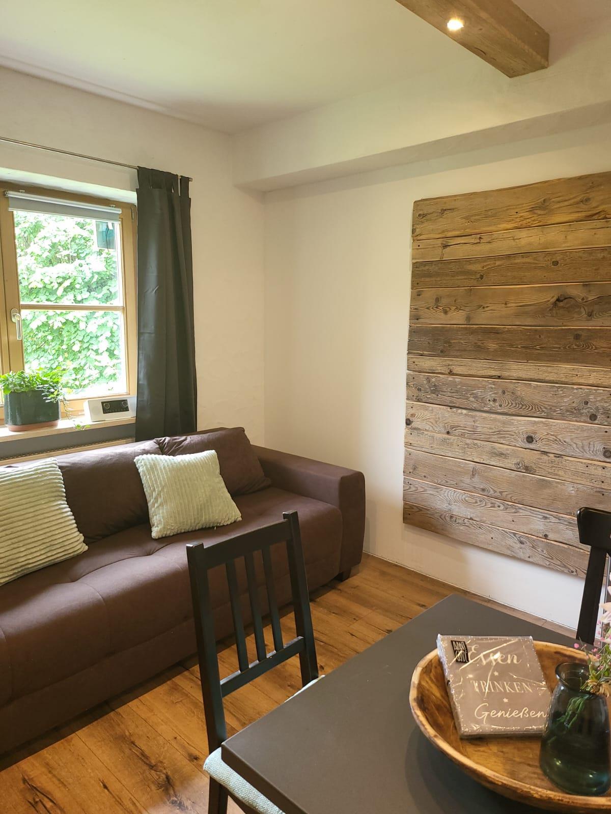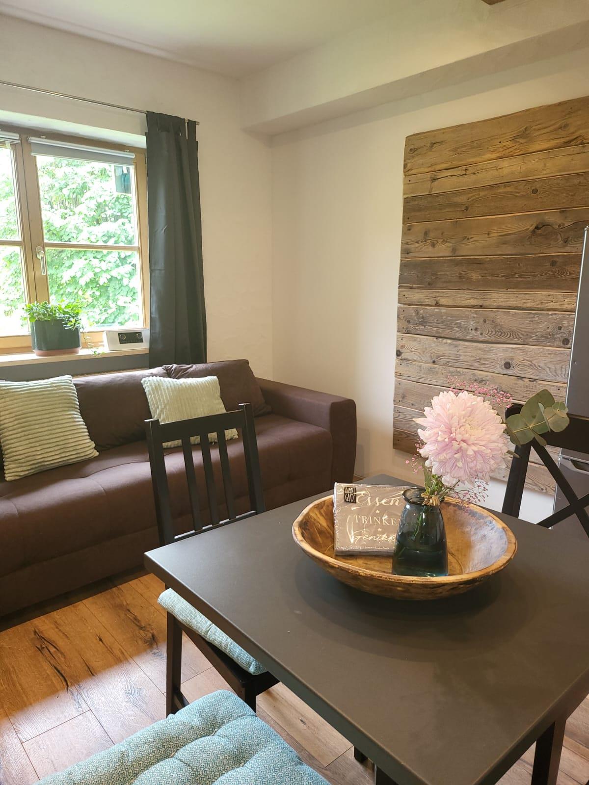 Beautiful holiday flat for a maximum occupancy of 4 people. There is a double bed in the sleeping area. Bed linen is of course provided and there is another sofa bed in the living area. Recommended occupancy of the holiday flat for four people. It also has an extra dining area with a view of the Kaiser Mountains.