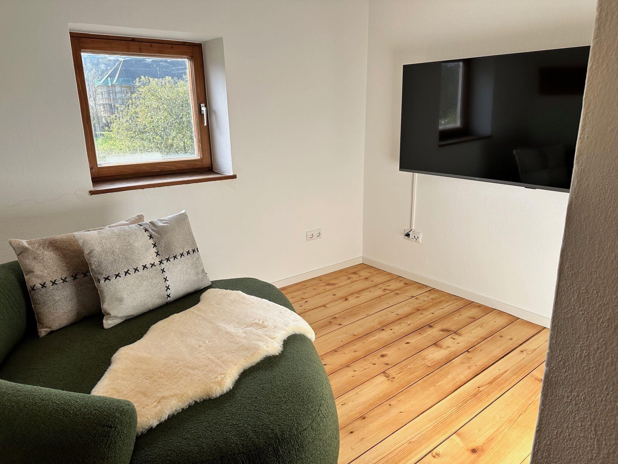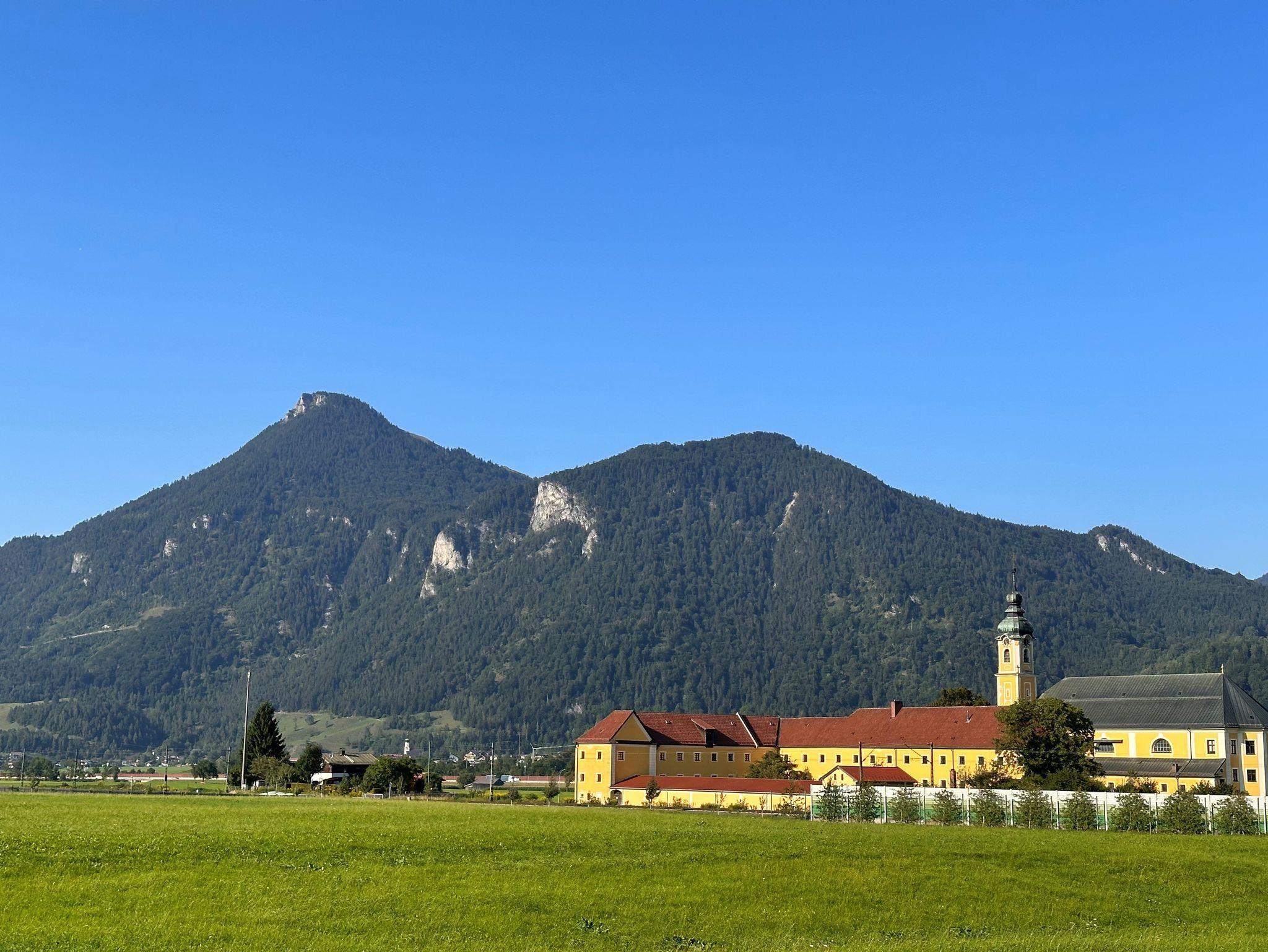 Unsere Ferienwohnung besticht durch einen unverbauten, grandiosen Ausblick auf die umliegenden Berge und das Kloster Reisach – ein Panorama, das Ihnen zu jeder Tageszeit Ruhe und Inspiration schenkt.