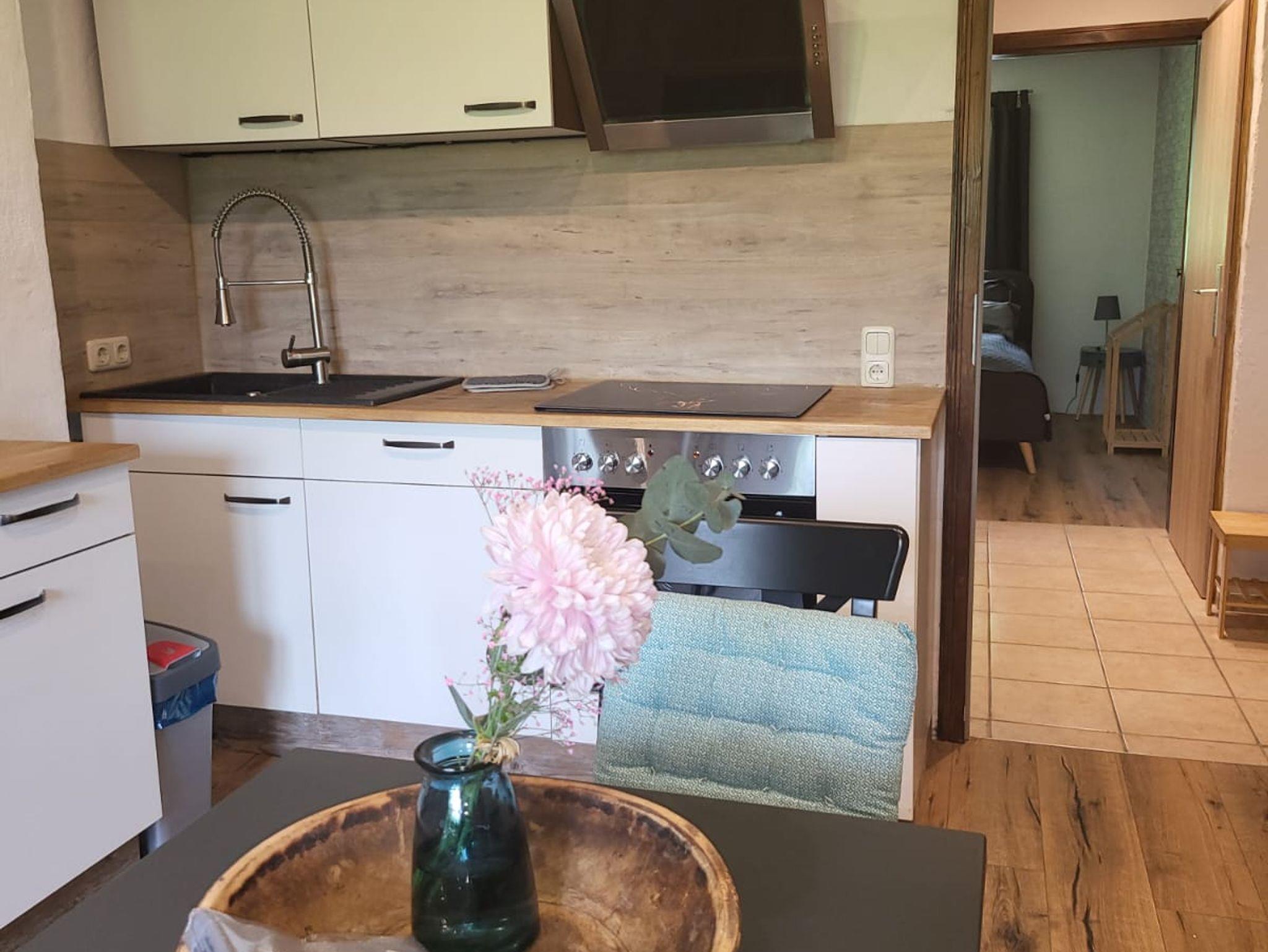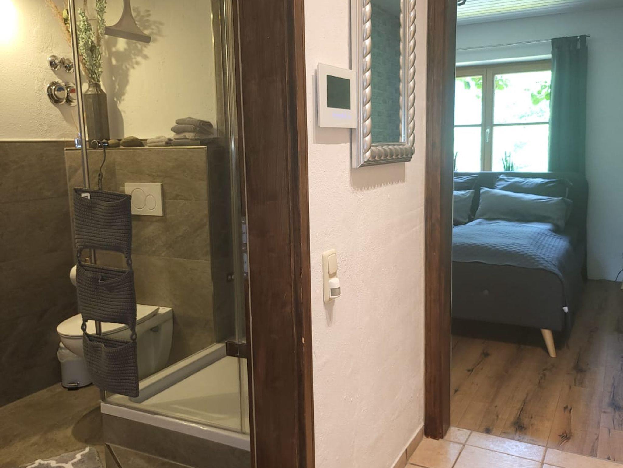 Zusätzliche Ausstattung mit TV – Wlan – DAB, Internet Radio.Moderne, Küche mit Kühl- und Gefrierschrank, Backofen mit Ceranfeld sowie einer Spülmaschine. Kleingeräte wie z. B. Kaffeemaschine und Toaster sind selbstverständlich vorhanden. Zusätzlich sämtliche Kleinutensilien, die man zum Kochen und Essen braucht natürlich auch. Das Bad verfügt über eine Dusche, wobei ein Föhn und Handtücher im ausreichenden Maß vorhanden sind. In der Ferienwohnung befindet sich ein Doppelbett 1,80 x 2,00 m und eine Schlafcouchen für je 2 Person.