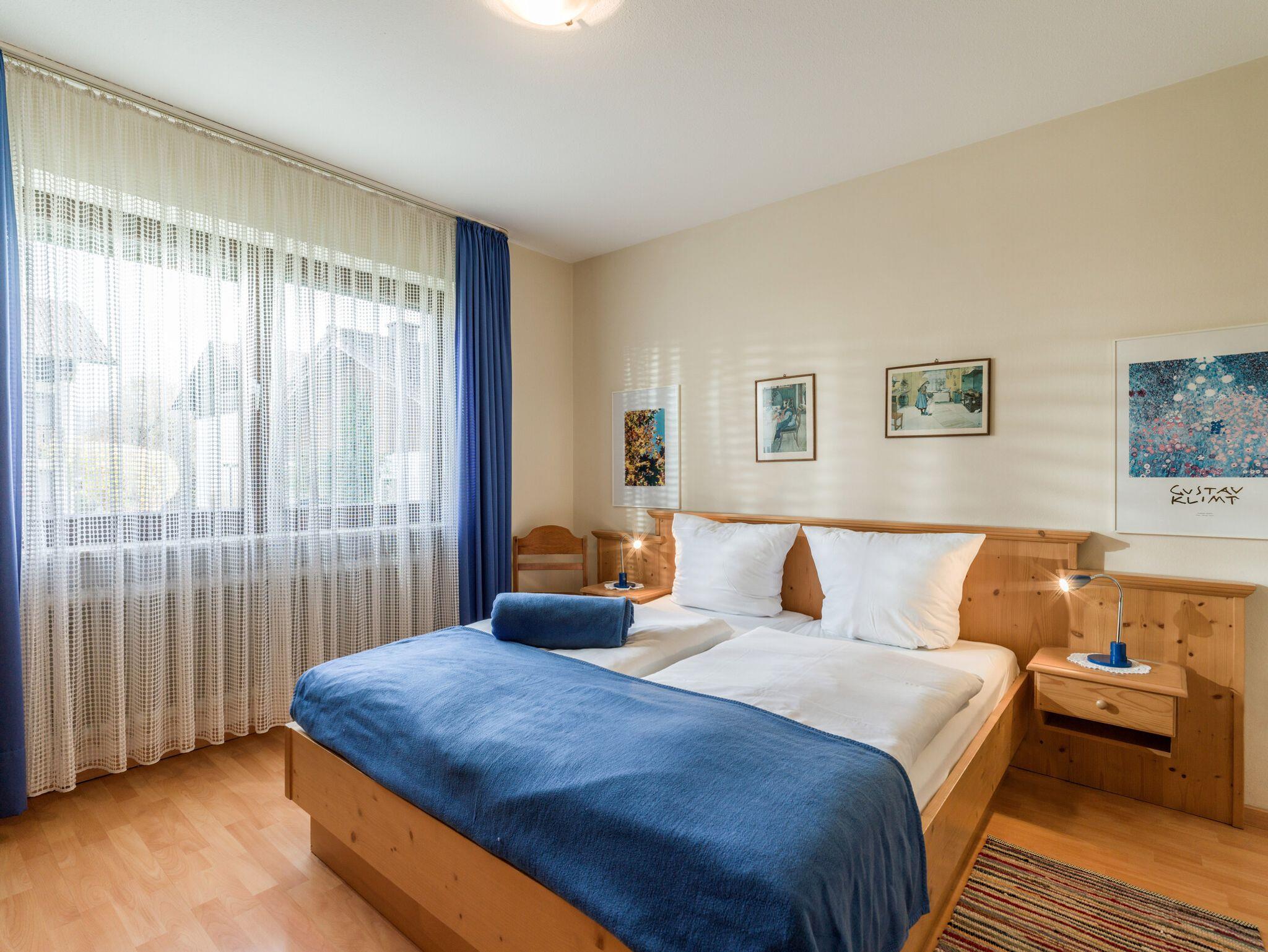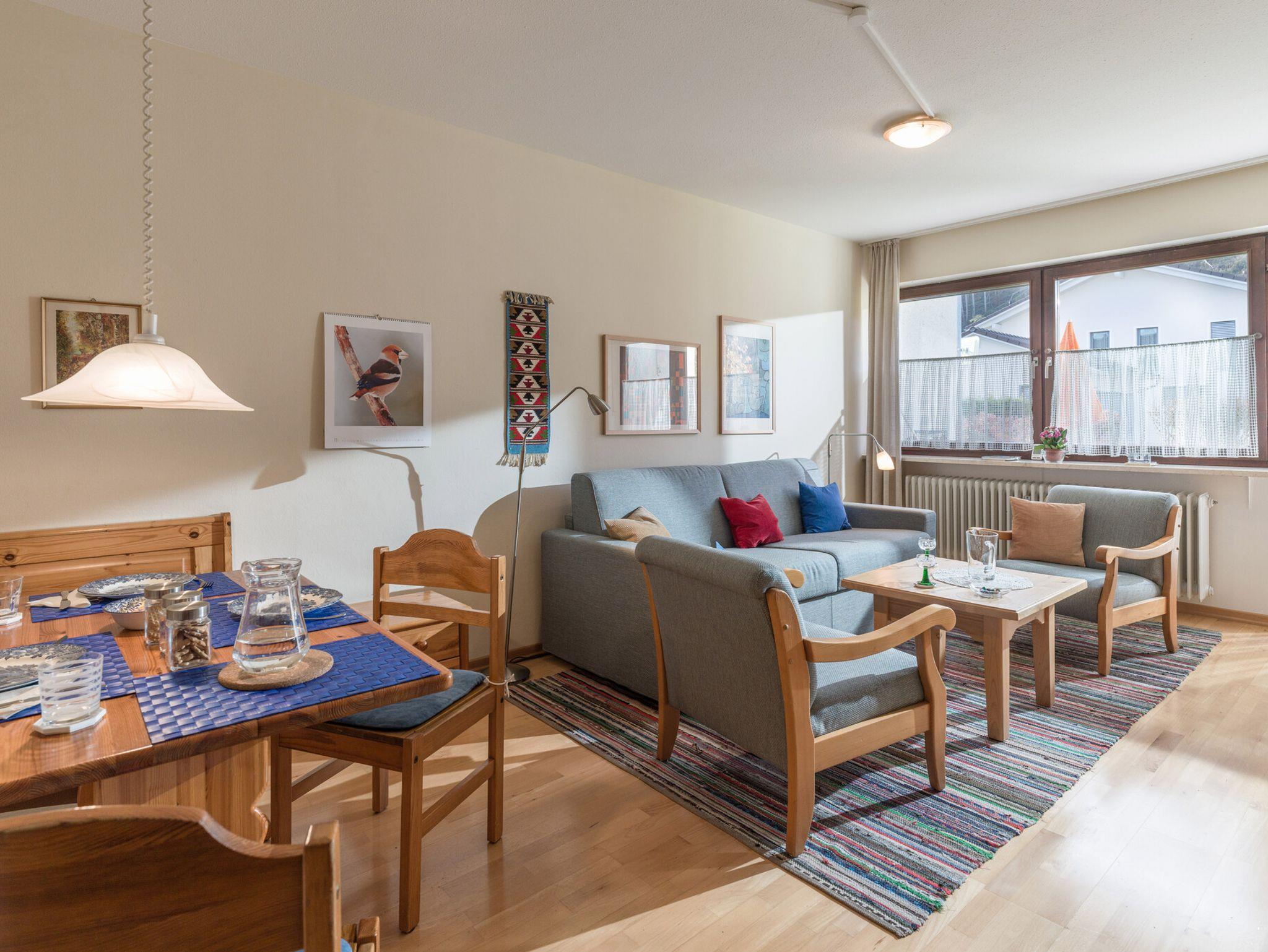 Freundlich eingerichtete Ferienwohnung im Erdgeschoss mit separater Küche, Bad mit Badewanne /WC, Schlafzimmer mit Doppelbett , einem hellen Wohnraum mit gemütlicher Essecke . Platz genug für 2 bis 4 Erwachsene oder einer kleinen Familie. Das Wohnzimmer ist mit einer Ausziehcouch für 2 Personen und einem Esstisch für 4 Personen ausgestattet. Der Balkon lädt nach einem ereignisreichen Tag zum Sitzen im Freien ein. Die Küche verfügt über einen Backofen, Kühlschrank, 4-Plattenherd, Kaffeemaschine, Toaster, Wasserkocher und Küchenutensilien. Die Wohnung liegt in einer familienfreundlichen Anlage mit Sauna, Fitnessraum, Spielezimmer, Spielplatz, Ruheinseln im Garten und einem Hallenbad in ruhiger Lage am Tor zu den Alpen.
