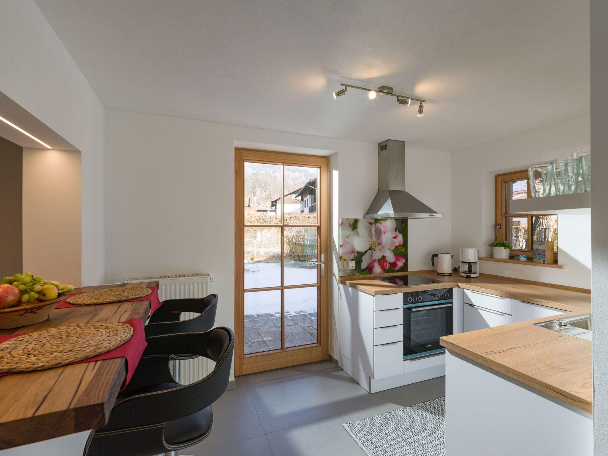 Oberbayerisches Inntal, Kaiserregion, ebenerdige Wohnung mit zwei Terrassen und kleinem Garten, Grill, Tischtennis, Kaiserblick, Aktivurlaub, Wandern, Radfahren, Berggehen, Klettern, Baden in den vielen Seen der Umgebung, Skifahren und Rodeln, Hocheckbahn mit Sommer- und Winterbetrieb (10 Minuten Fußweg), Kufstein und Tirol in unmittelbarer Nachbarschaft. Stellplatz vorhanden.