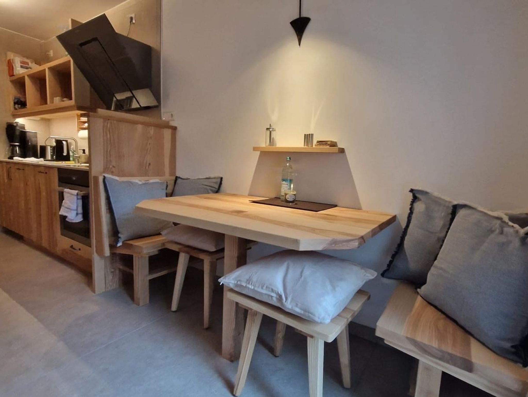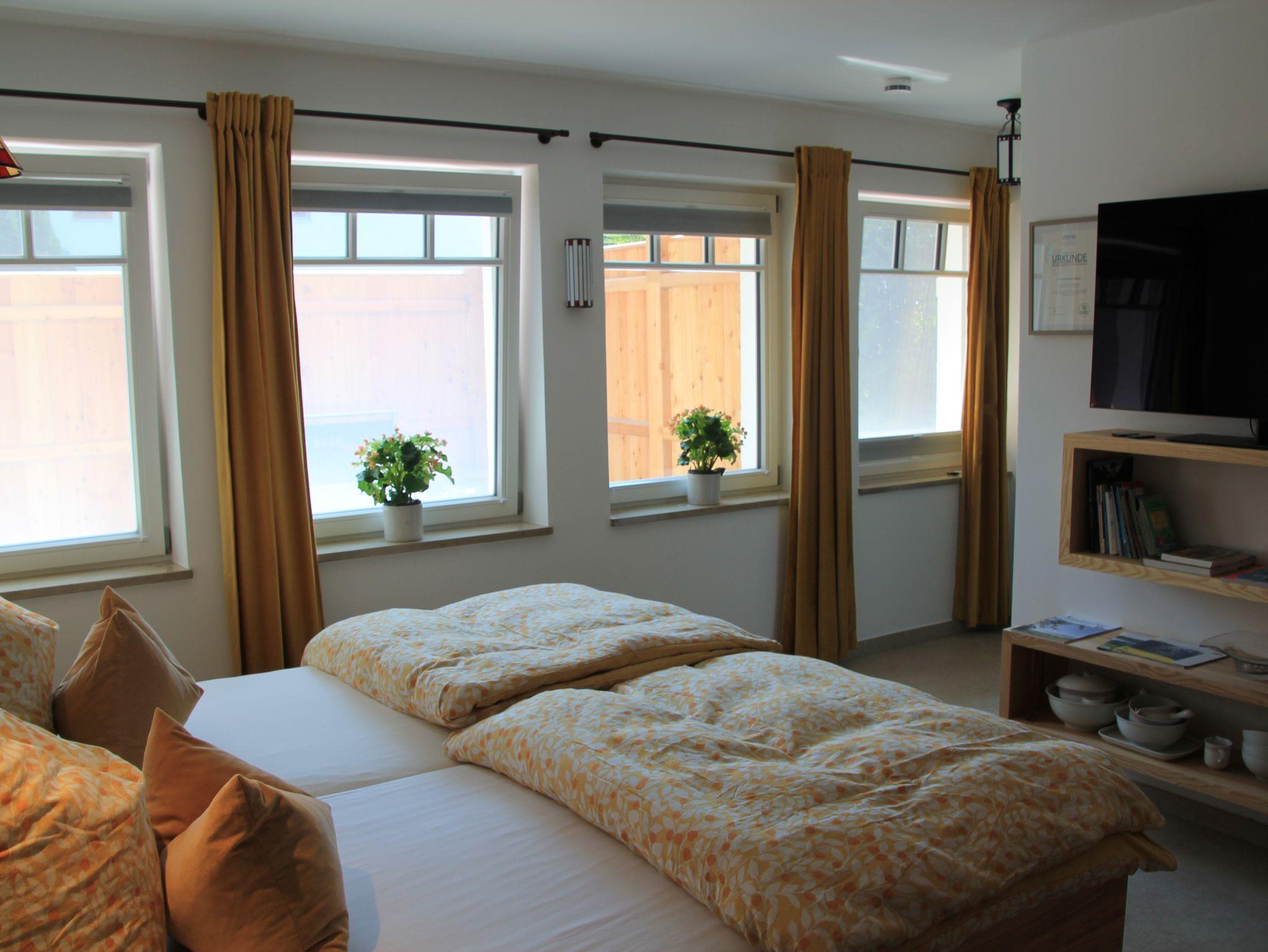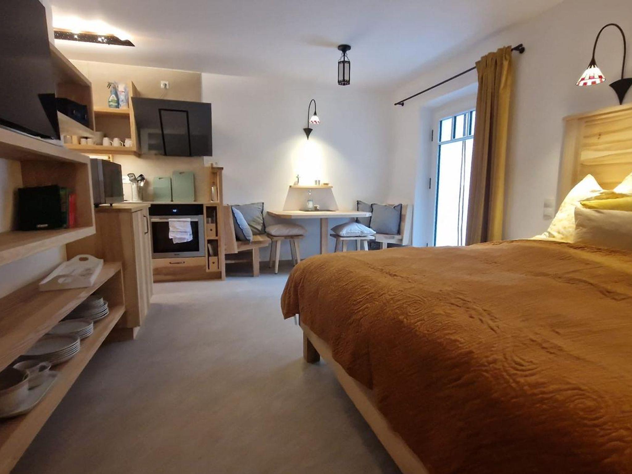 Ferienwohnung BERGWELTEN ... der Willkommensunterschied: 1 Flasche Prosecco zum Urlaubsstart - ab 7 Nächte! Unser hochwertig ausgestattetes Wohlfühl-Base-Camp ist 2024 komplett neu entstanden, befindet sich im Erdgeschoss, in sonniger Lage, mit seperatem Eingang und einem ca. 30 qm großen, privaten Außenbereich sowie weitestgehend sichtgeschützter Terrasse. Neben einer vollwertigen Küche samt Geschirrspüler & Mikrowelle, Esstisch, Smart-TV, großem Doppelbett, Radio & Klimaanlage hat es ein neues Bad mit ebenerdiger Dusche sowie Fußbodenheizung in der ganzen Wohnung! Ab 12.12.2025 steht ein zusätzliches Zimmer - von außen zugänglich - mit Einzelbett für eine 3. Person, samt eigenem WC & Dusche sowie Waschbecken zur Verfügung.