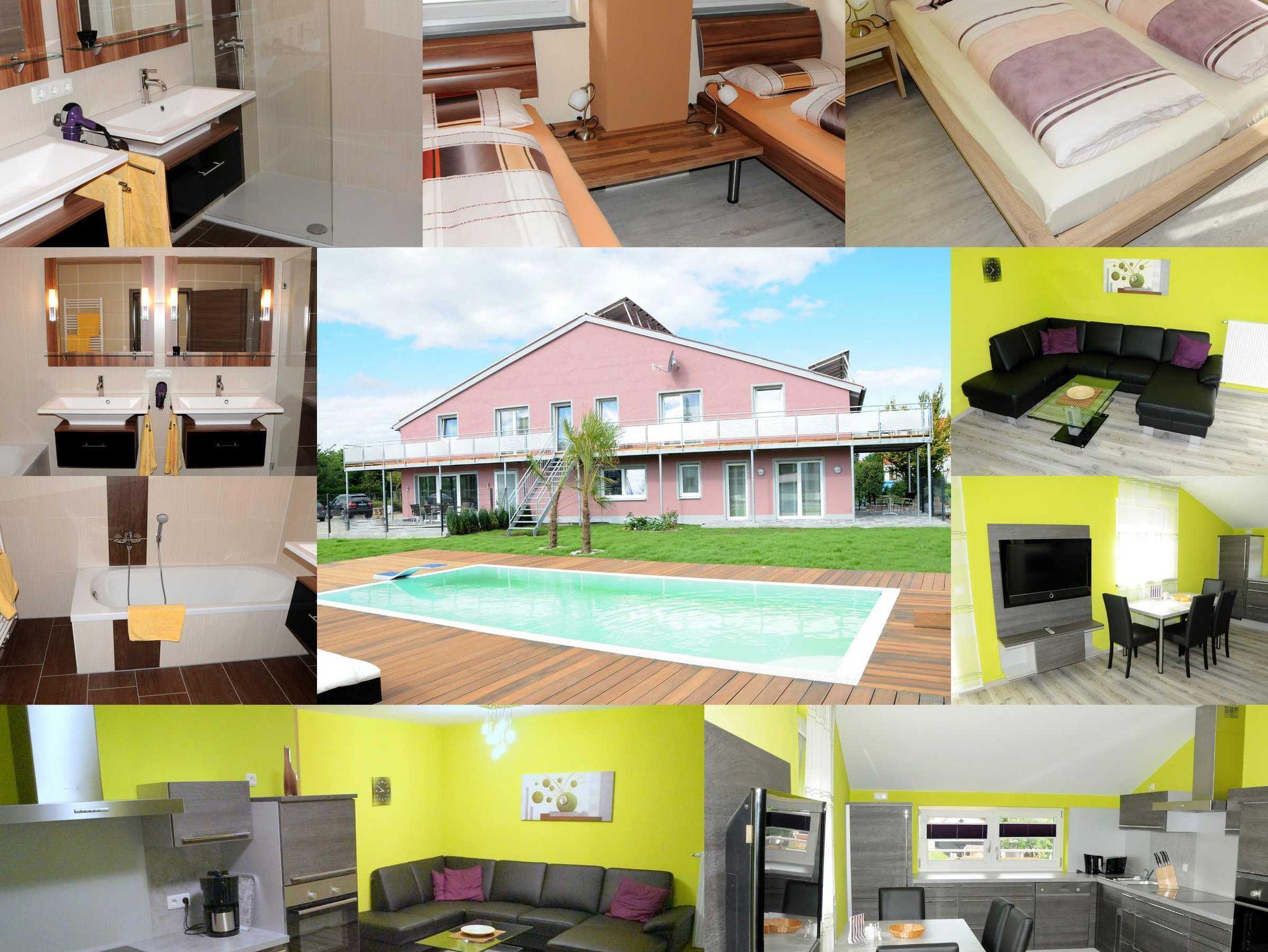 Unsere 5***** Ferienwohnungen sind stilvoll eingerichtet und bietet für jeden die perfekte Möglichkeit bei uns so richtig zu entspannen. An unserem 8x4 Meter großen Pool mit Sprungbrett und Schiebehalle (Nutzung auch bei schlechtem Wetter von Mai - Ende September möglich) können Sie im Sommer ein paar schöne Stunden in der Sonne genießen. In den Ferienwohnung stehen Ihnen folgenden Annehmlichkeiten zur Verfügung: - Sat LED TV im Wohnbereich - zusätzlicher LED TV im Schlafzimmer - WLAN - Einbauküche mit Backofen Kühlschrank, Gefrierteil - Mülltrennsystem - Zur gemeinschaftlichen Nutzung: Waschmaschine, Trockner, Bügeleisen, 2 Staubsauger - Garten und Poolbereich: Pool 8x4m , Sprungbrett Gegens. Anlage - Fitnessbereich Gartenhaus: Crosstrainer, Schrägbank, Ergometer - Grillplatz, Feuerstelle, Fahrräder, Tischtennisplatte, Schaukel usw.
