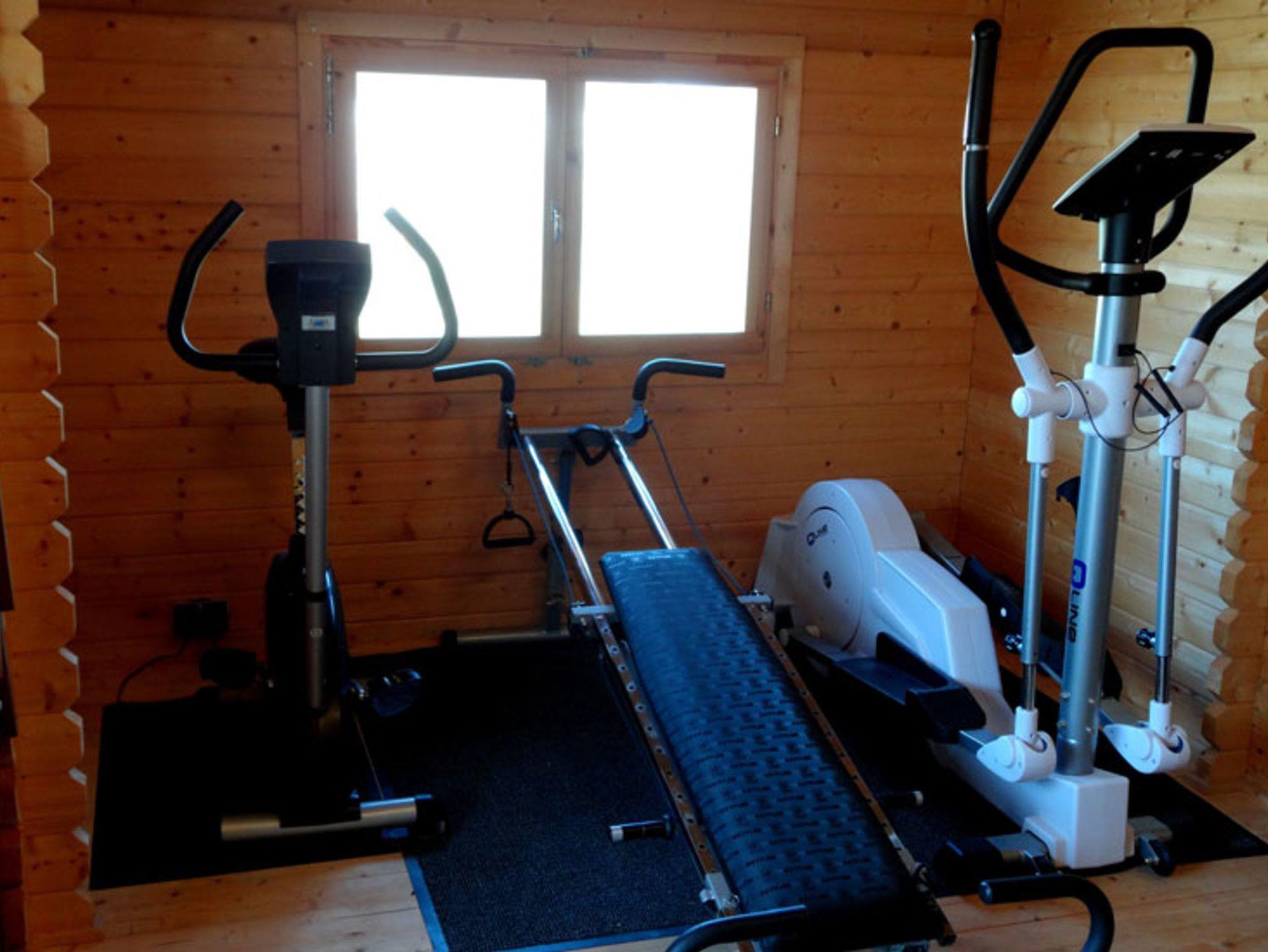 - Anlage Fitnessbereich Gartenhaus: Crosstrainer, Schrägbank, Ergometer
